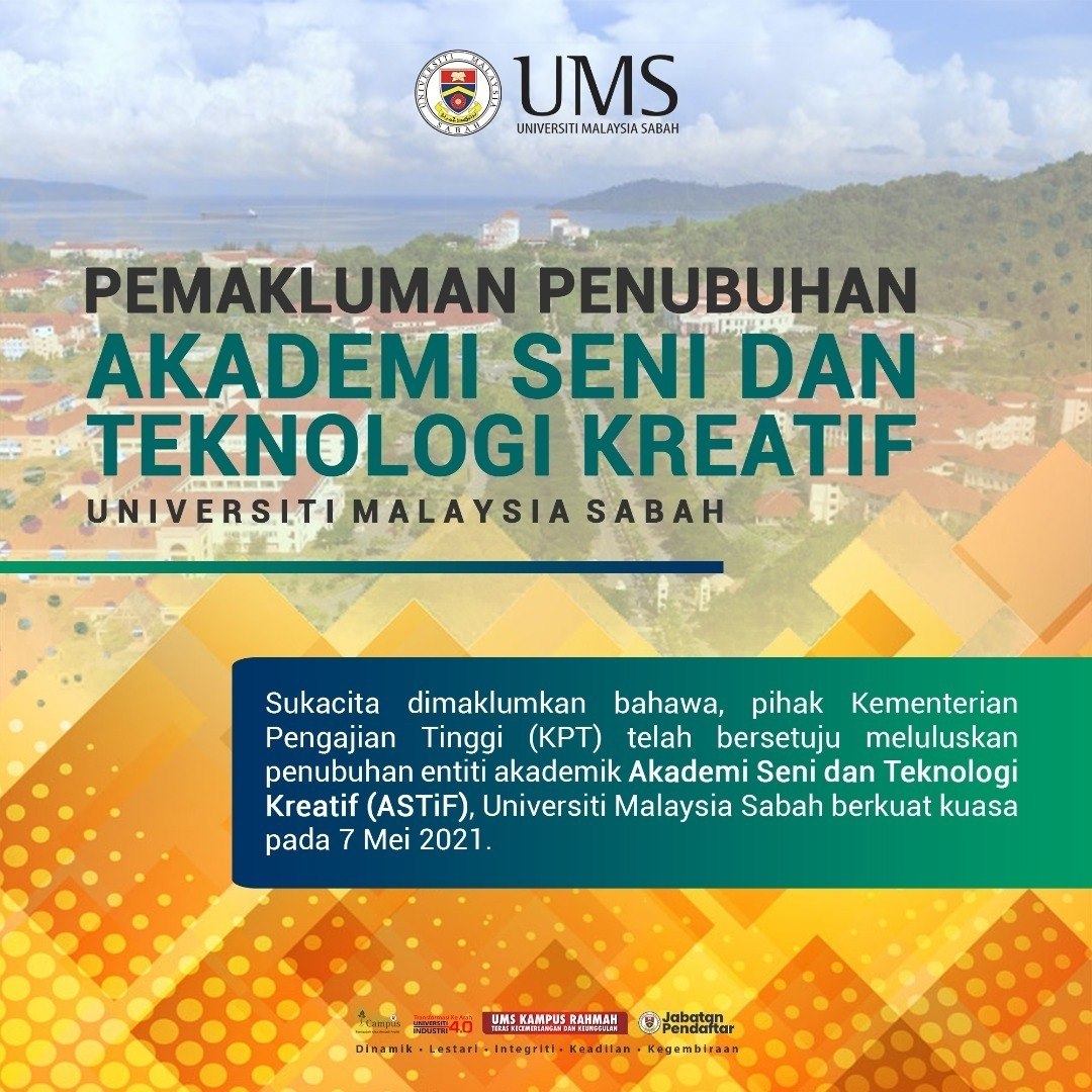 The Academy of Arts & Creative Technology (ASTiF) was established on the 7th of May 2021. The establishment of ASTiF was done in line with the restructuring of the Social Sciences and Arts fields which was subsumed under the Faculty of Social Sciences and Humanities. Through ASTiF, the arts especially the creative arts is once again a specialized field of study as it was once before under the School of Art Studies on the 13th April 1999.