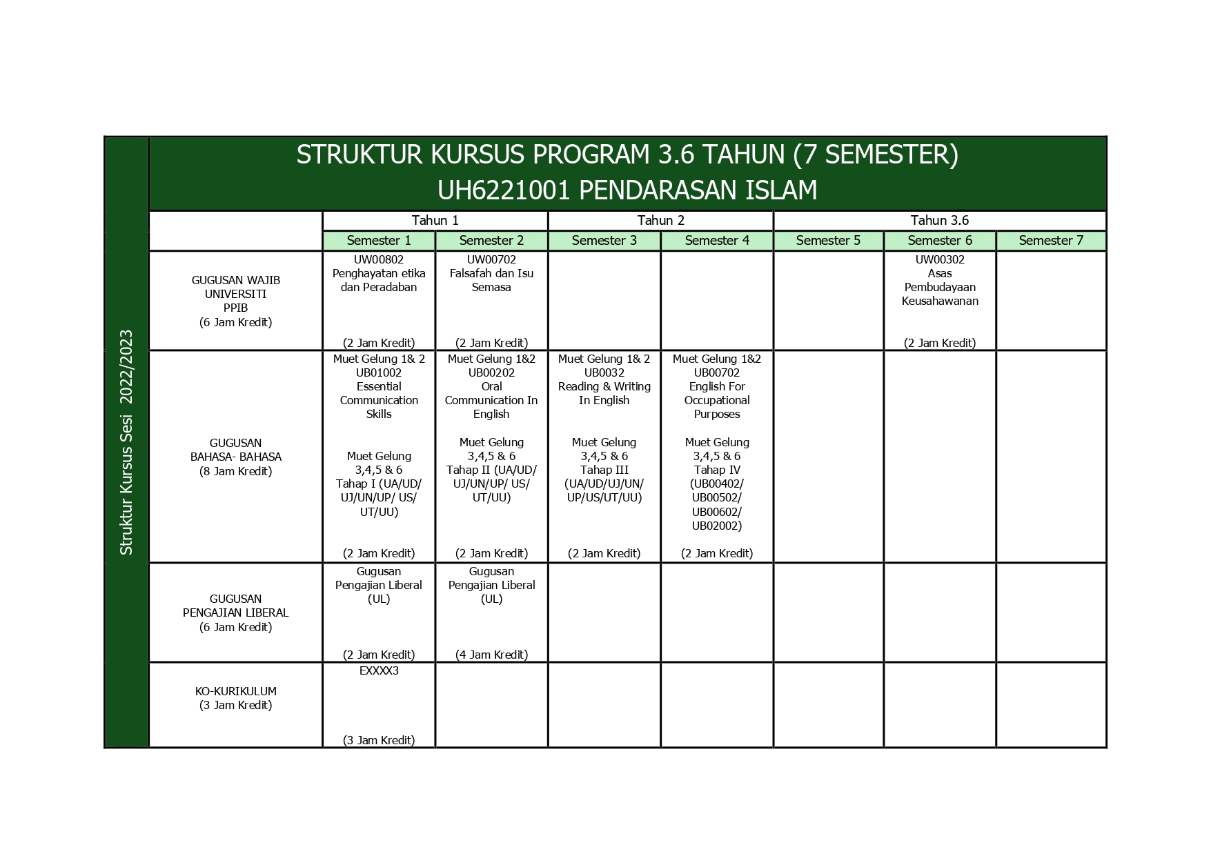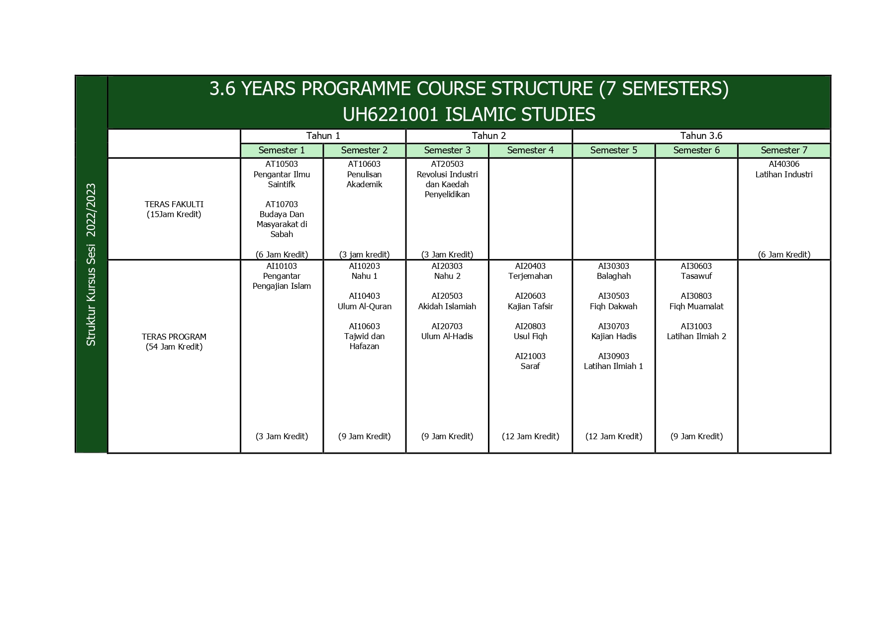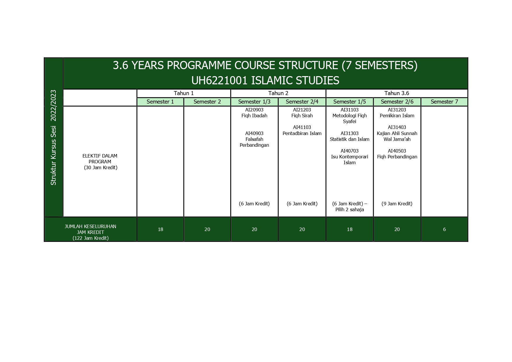 Struktur Kursus ProgramPendarasan IslamIslamic Studies Programme Course Structure