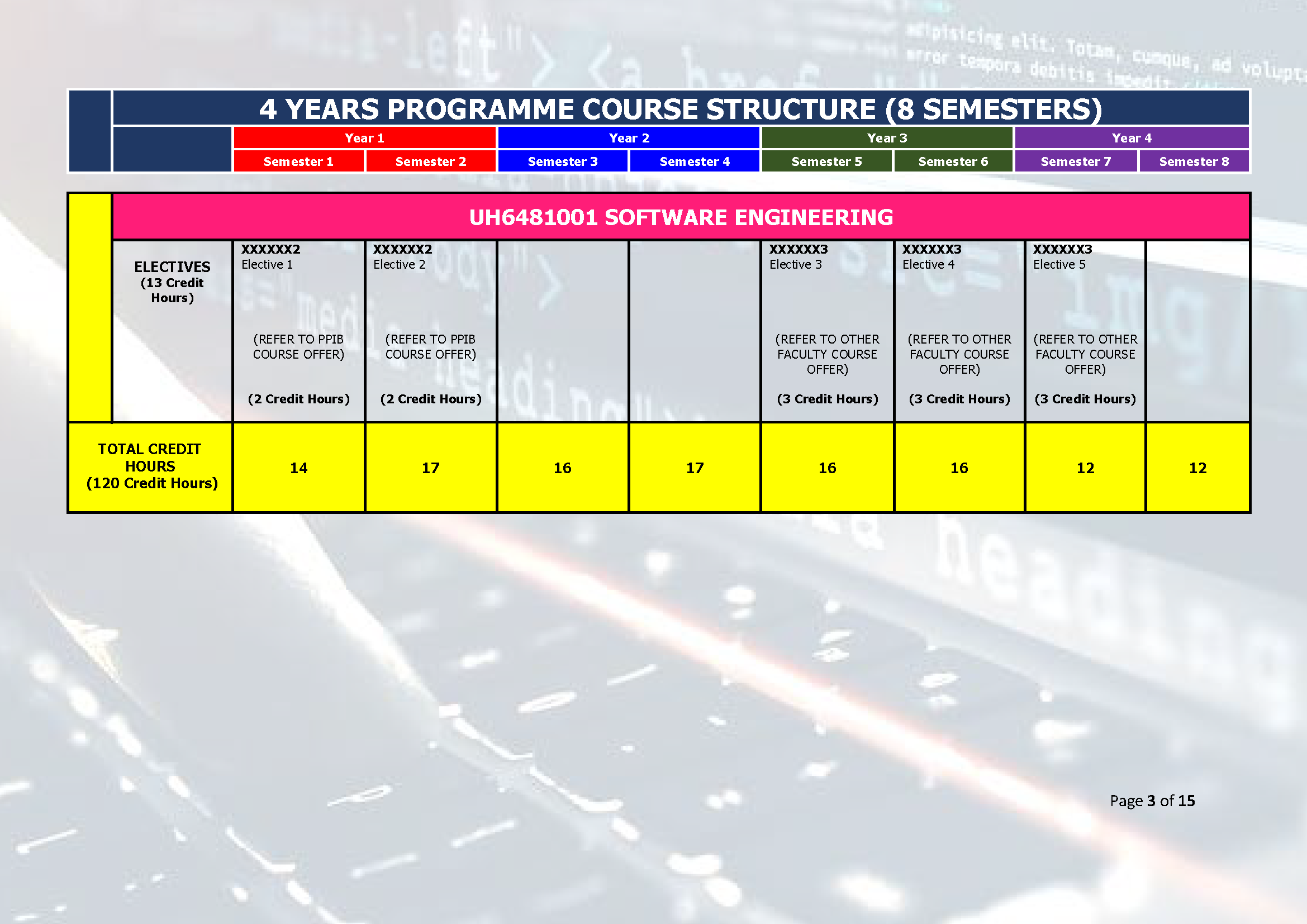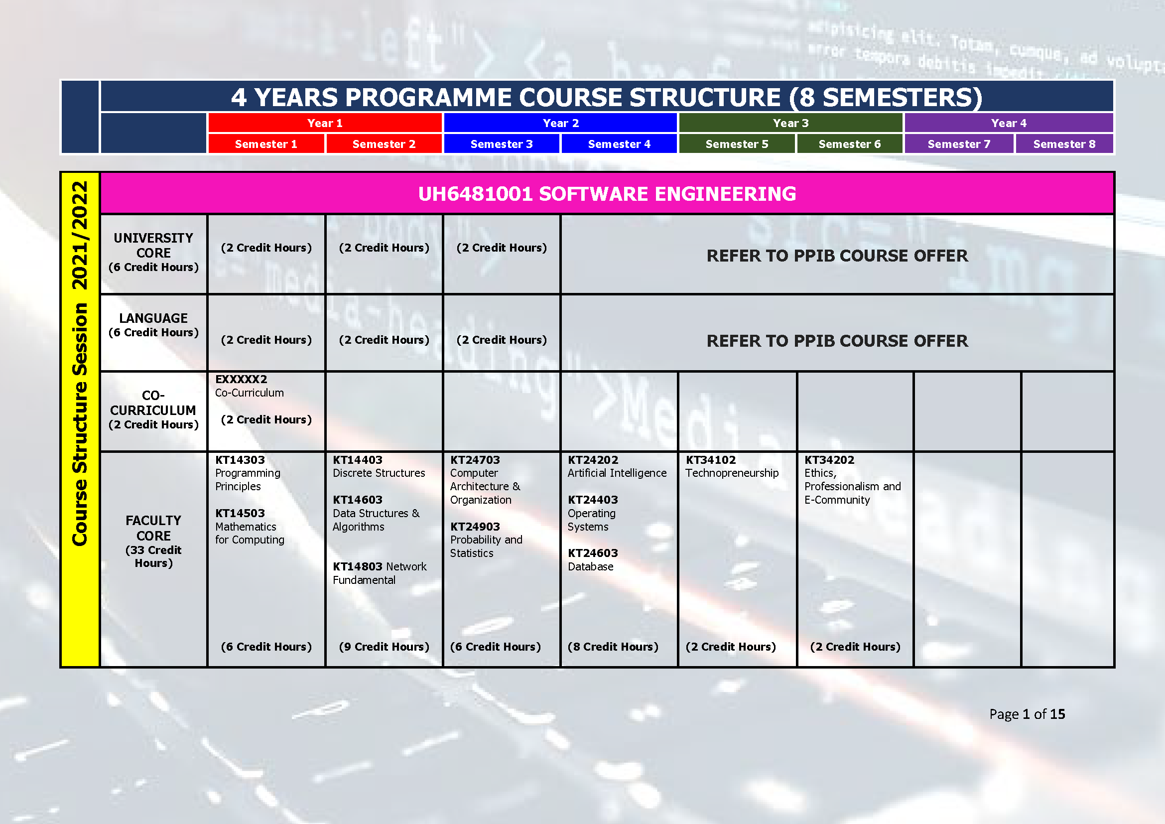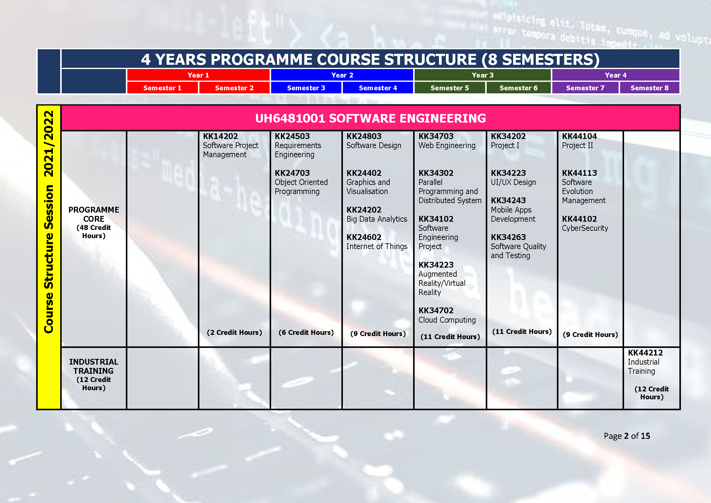 - Programme : Bachelor Of Computer Science with Honours (Software Engineering)