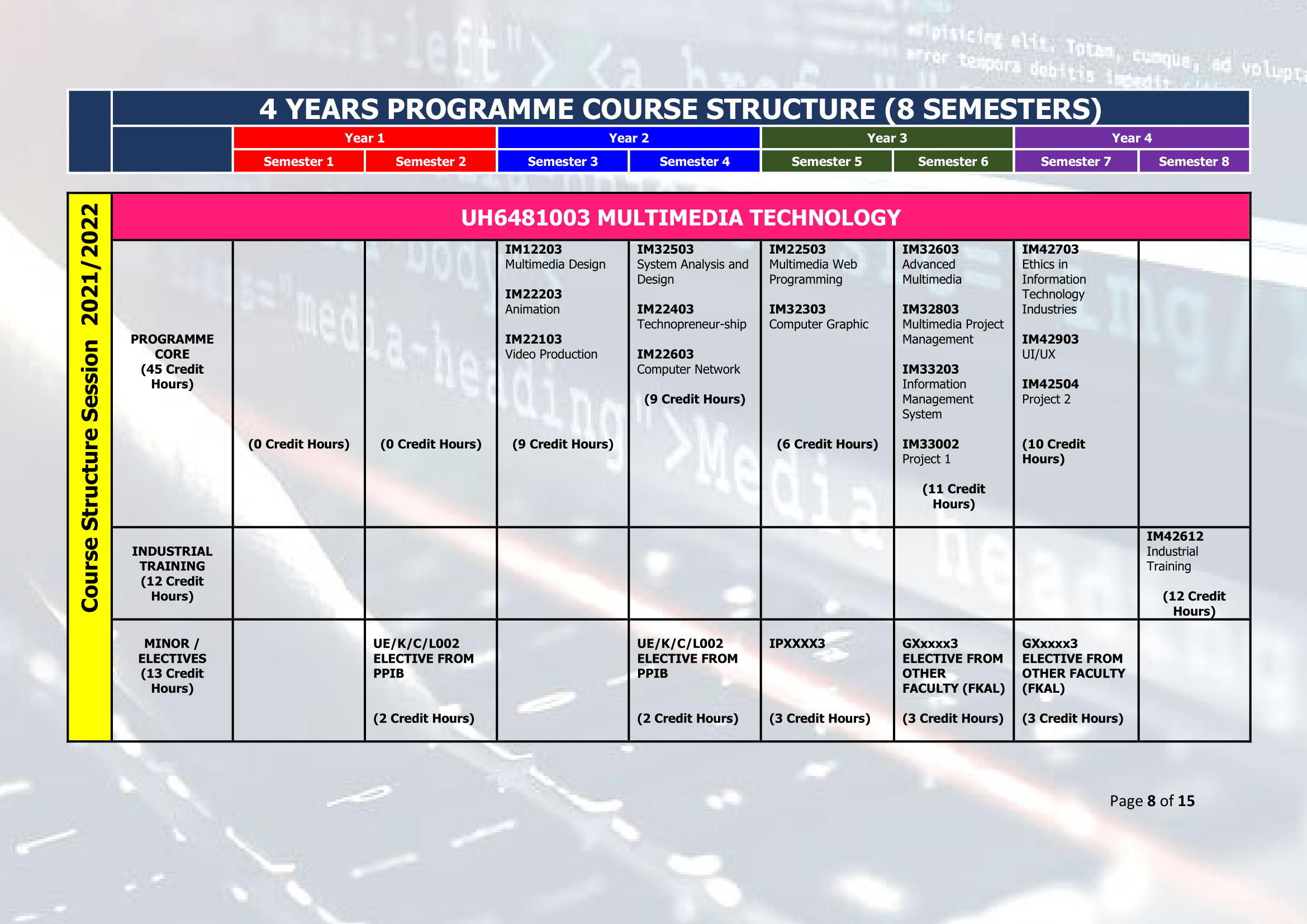 - Programme : Bachelor of Information Technology with Honours (Multimedia Technology)