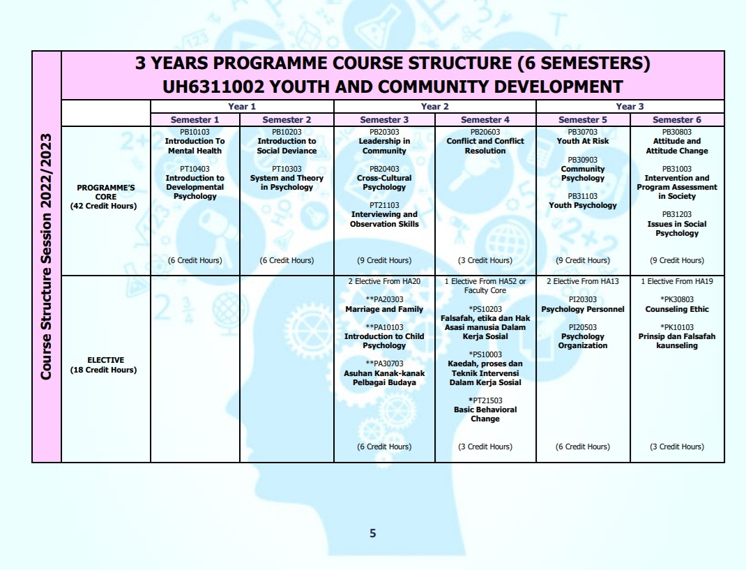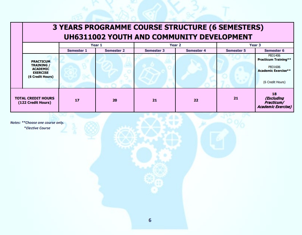 This program traces youth development from the cognitive, linguistic, social, affective, and moral aspects through various theoretical orientations. Research results will be utilized to show the implications of development processes on youth problems in the context of community development. This program discusses planning, implementation, follow-up, and monitoring of youth and community programs. Students will also receive practical training in community services at rehabilitation institutions to produce well-informed and experienced graduates in the field of community development. Training is conducted with the cooperation of government and non-government agencies such as the Department of Social Services, Department of National Unity, NGOs, and other related agencies. Graduates of this program will serve the public and private sectors as community development officers, rehabilitation officers, consultants, research assistants, or tutors in educational institutions, facilitators and helpers in related organizations.