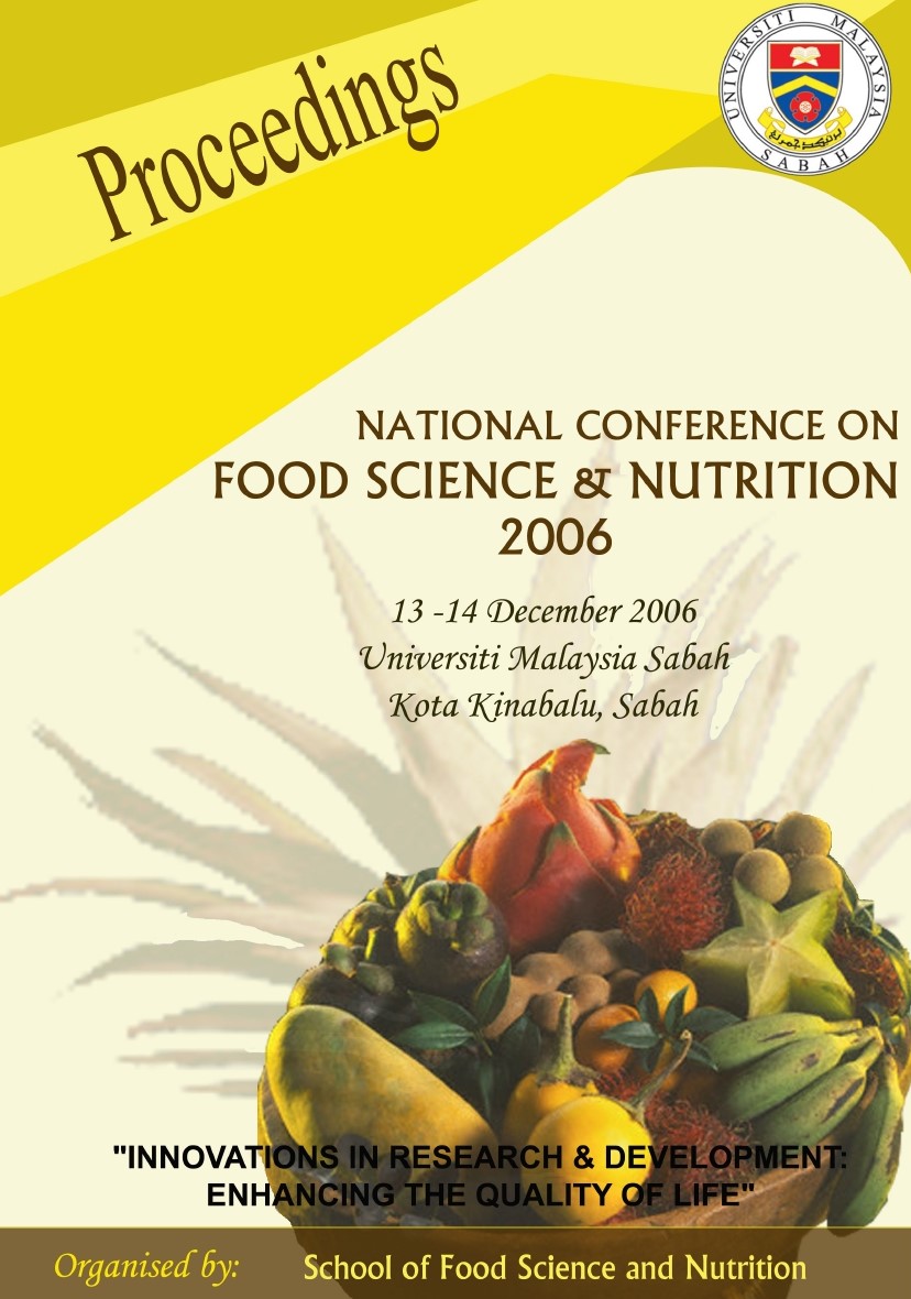 The 1st National Conference on Food Science and Nutrition (NCFSN2006) was successfully organized by the Faculty of Food Science and Nutrition, Universiti Malaysia Sabah on 13–14 December 2006. This inaugural conference served as a significant platform for academics, researchers, and industry professionals to share research findings, discuss emerging trends, and strengthen collaborations in the areas of Food Science and Technology and Nutrition. The conference encompassed key thematic areas including food quality assurance and safety, food chemistry and biochemistry, food processing and engineering, as well as nutritional status, dietary habits, community nutrition and health, and food-drug interactions—reflecting the faculty’s commitment to advancing knowledge and innovation in food and nutrition sciences.