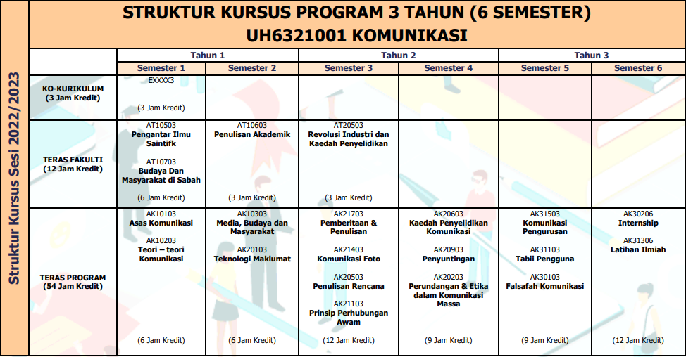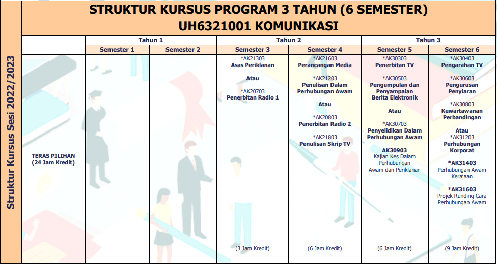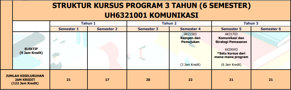 The program offers a theoretical study of communication patterns, emperitikal and professional. The courses emphasize the pattern and practice of media in terms of production, representation and reception. Students are exposed to various genres and media products and were encouraged to analyze discourse and narrative media critically. Students are also introduced to issues related to police and control media, new media and media globalization and its impact, culturally, politically and economically to society. The program offers specialization in broadcasting, journalism, public relations, and advertising and equip students with skills in writing and publishing professionals as well as critical thinking skills.