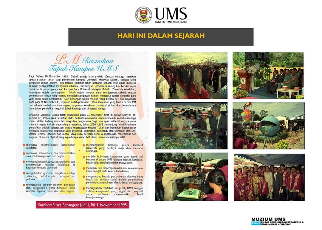 Muzium Universiti Malaysia Sabah dirasmikan pada 25 Oktober 2003 oleh YBhg. Tan Sri Profesor Datuk Seri Panglima Dr. Abu Hassan Othman, Naib Canselor UMS yang pertama. Muzium ini merupakan sumber inspirasi dan ilham YBhg. Tan Sri Profesor Datuk Seri Panglima Dr. Abu Hassan Othman, yang mana dedikasi dan sumbangan beliau yang tidak berbelah bagi telah berjaya memacu Universiti melalui pelbagai tahap pembangunan.Tujuan penubuhan Muzium ini dipaparkan melalui koleksi bahan pameran dan artifak yang penuh dengan nilai sejarah dan simbolisme kepada UMS. Koleksi tersebut adalah cerminan kepada segala usaha, sumbangan bakti dan pengorbanan yang telah dicurahkan oleh pelbagai pihak dan individu sejak penubuhan UMS pada 24 November 1994 dalam merealisasikan pembangunan Universiti ini. Muzium UMS turut berfungsi melahirkan semangat jatidiri dan kebanggaan dalam sanubari, bukan sahaja setiap warga kampus tetapi juga rakyat Sabah dan Malaysia, secara keseluruhannya. Ia diwujudkan untuk memberi inspirasi dan menerap nilai-nilai kecemerlangan demi manfaat intelektual, kerohanian dan kendiri generasi masa depan.