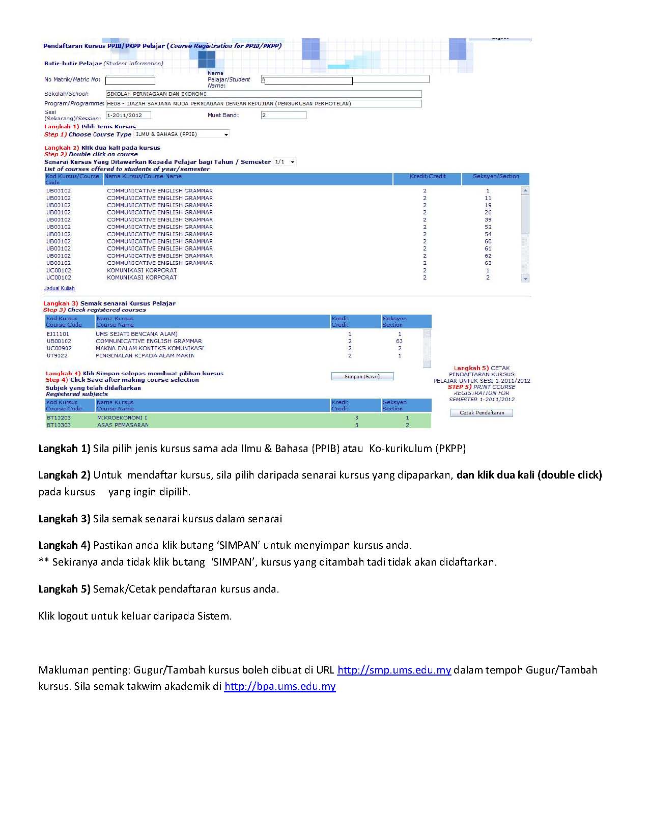 * Print SMP registration slip form for dealing with PKPP office and Academic Services Division (BPA) and for student's own record.