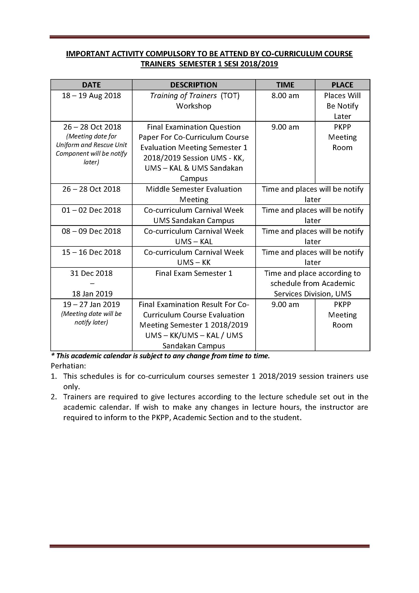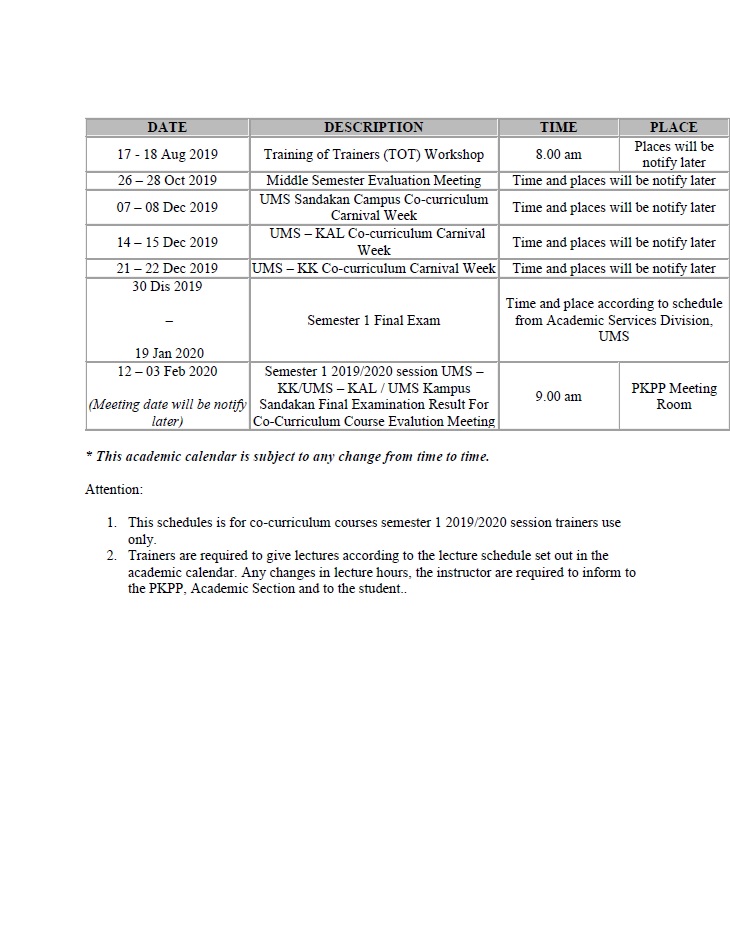 Considering the current situation pertaining to the spread of the COVID-19 in Malaysia, UMS will impose the following actions related to academic activities with effect from the 16th of March 2020 until further announcement is made: