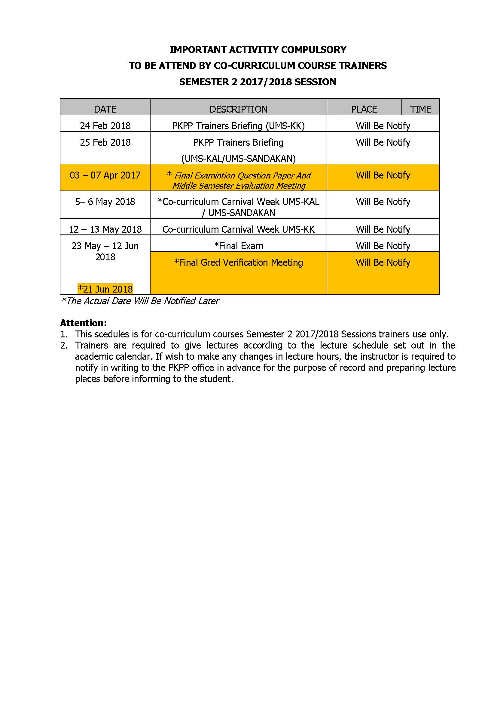 - All academic related activities in the forms of practical and class outdoor activities are postponed.