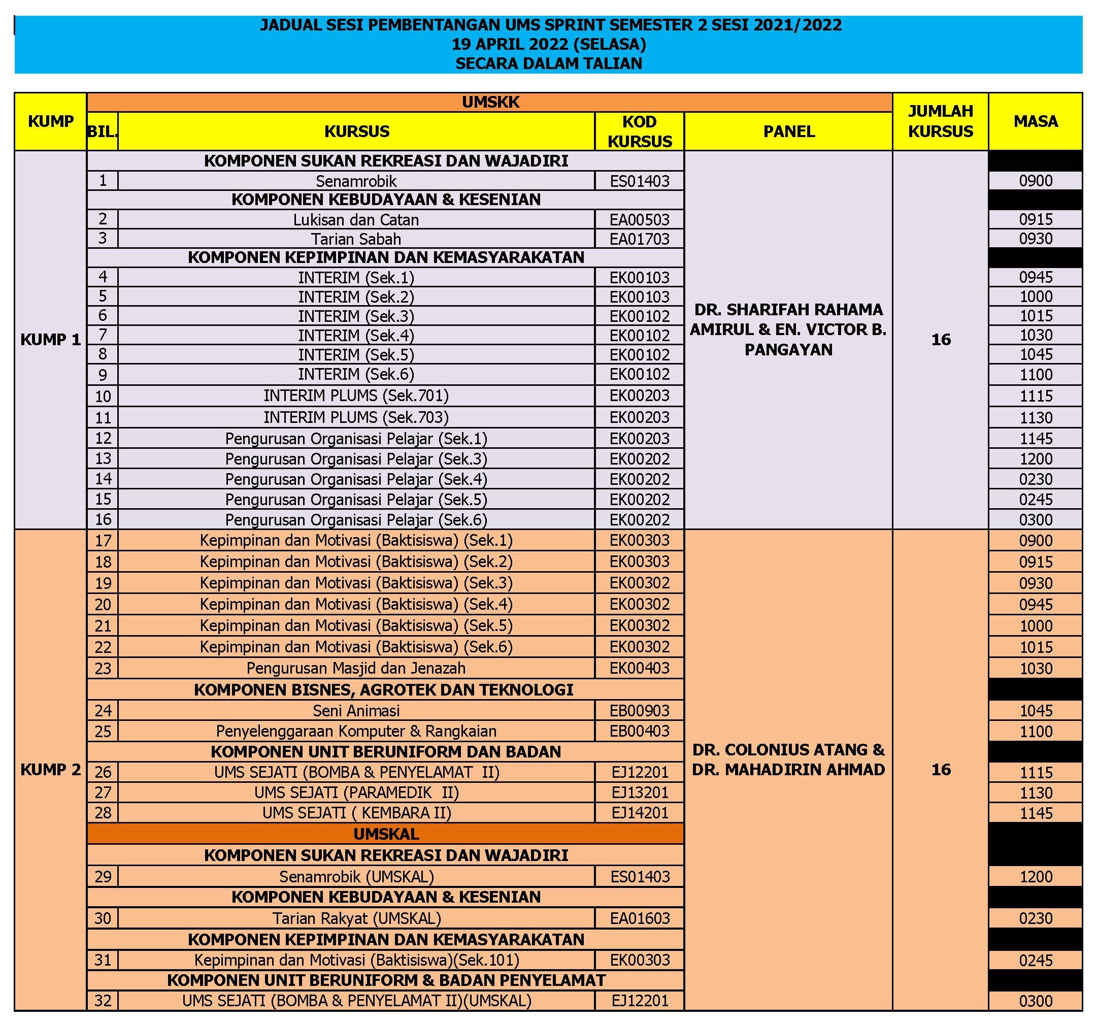 Please enter the presentation session by time that have been prerared for each course and exit when the presentation finish to avoid conferens video quota limit full.