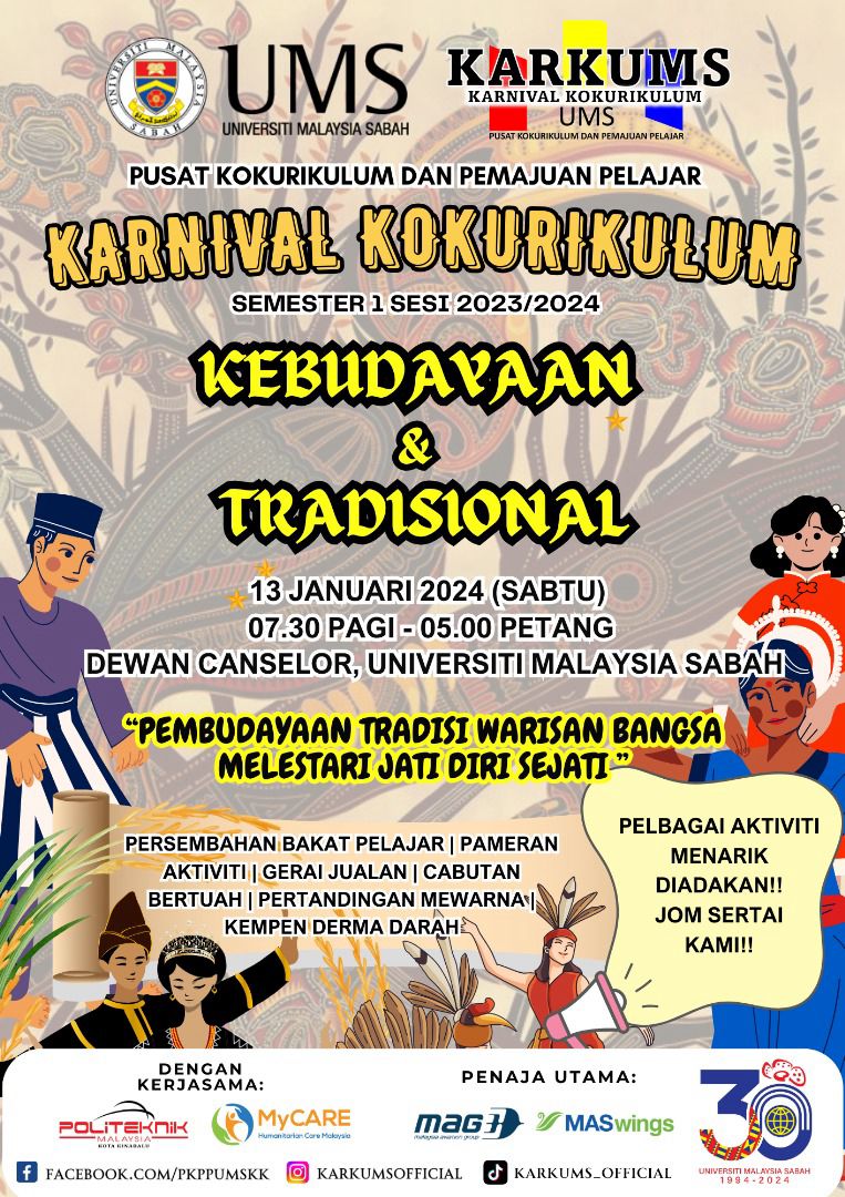 Beliau berkata demikian ketika merasmikan penutupan Karnival Kokurikulum UMS (KARKUMS) Sesi 1 2023/2024 di Dewan Canselor, UMS.