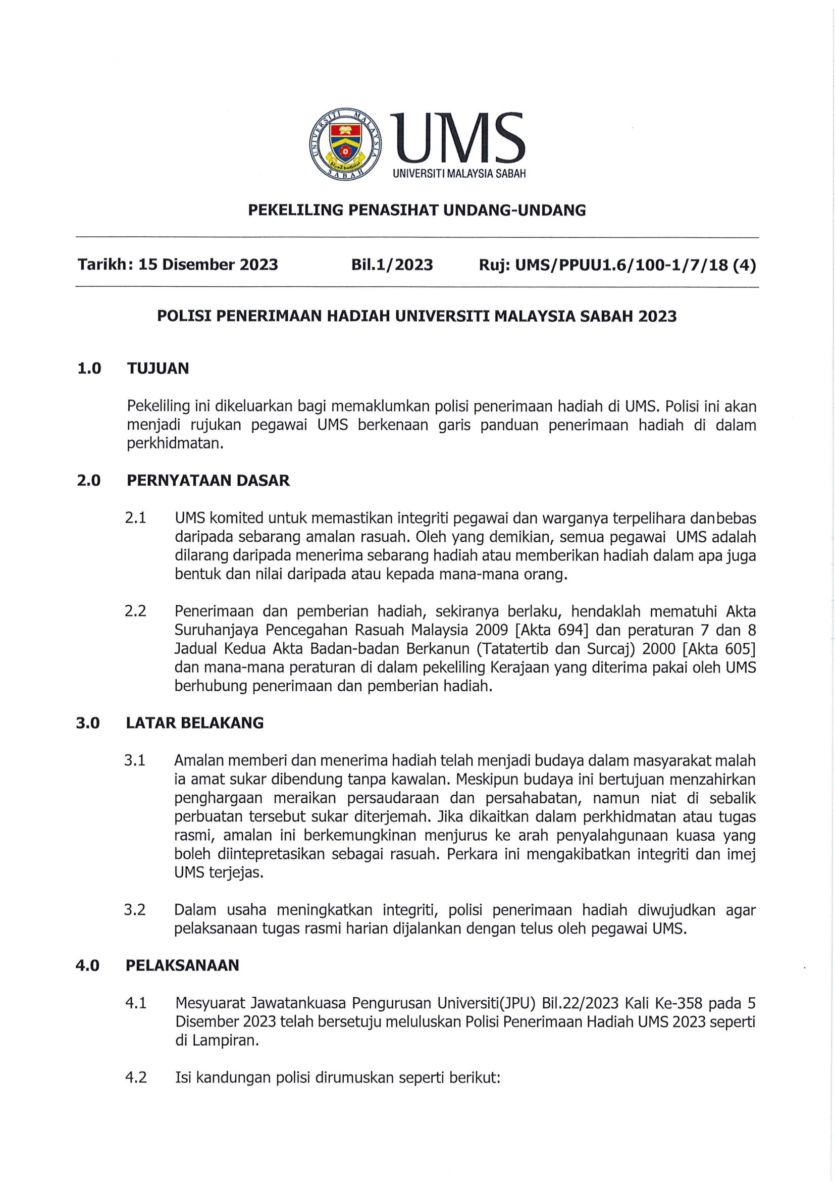 activity 18 January 2024 18 January 2024 Hits: 815 POLISI PENERIMAAN HADIAH 2023 Print POLISI PENERIMAAN HADIAH 2023