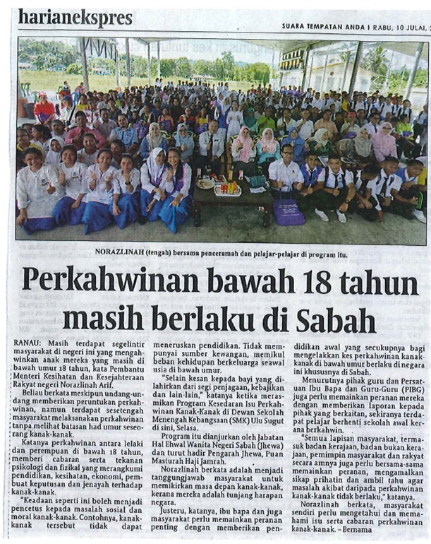 HARIANEKSPRES-Perkahwinan bawah 18 tahun masih berlaku di Sabah