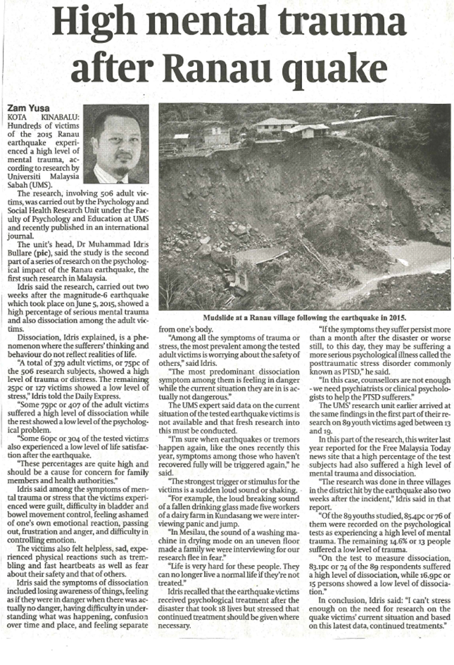 HIGH MENTAL TRAUMA AFTER RANAU QUAKE