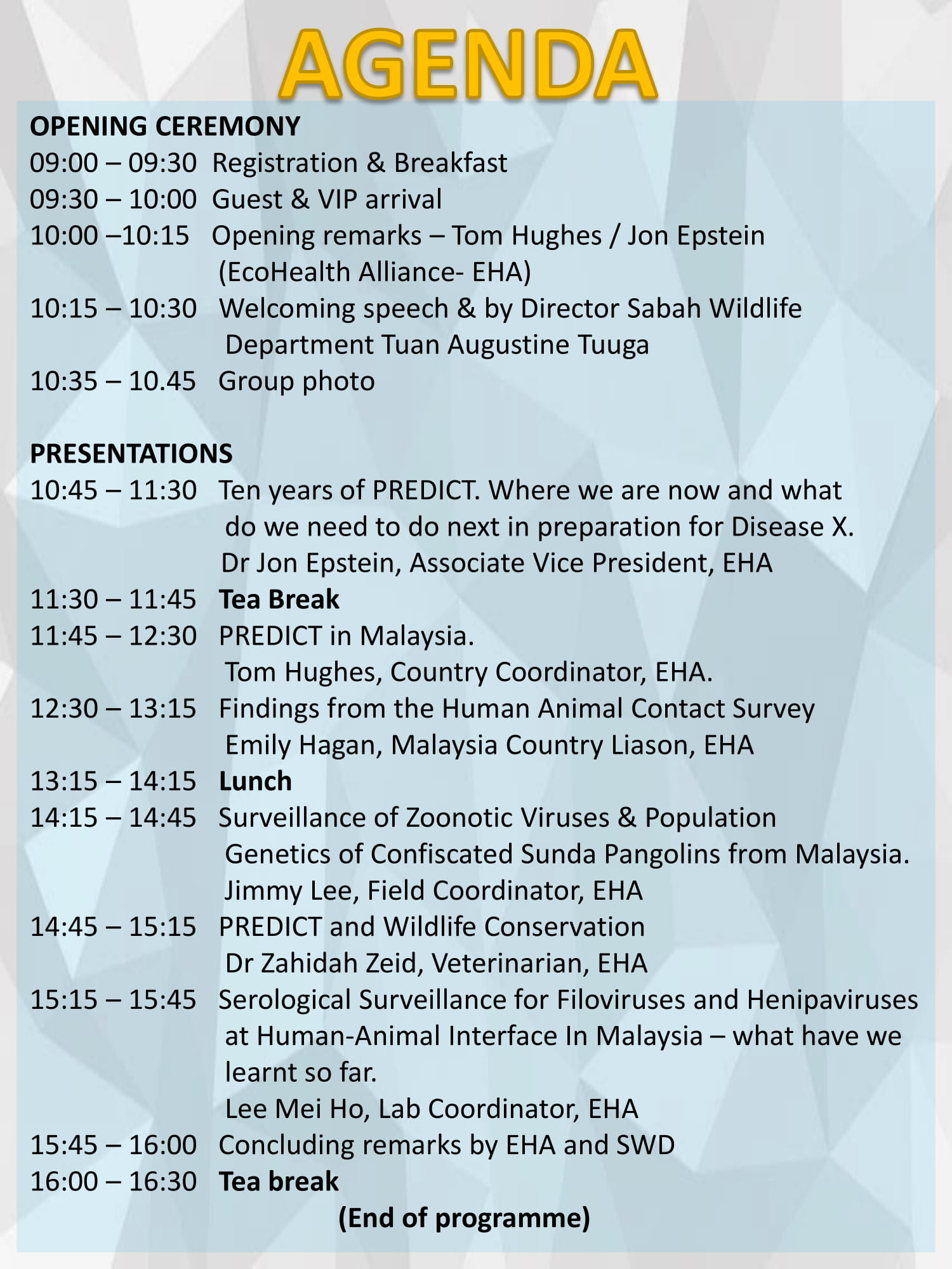 Tea break & lunch will be provided.