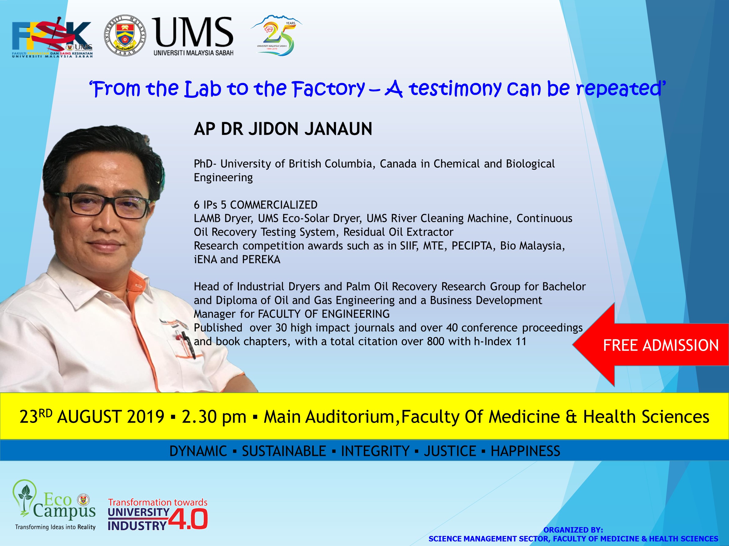 SUBJECT: PUBLIC TALK : 'FROM THE LAB TO THE FACTORY- A TESTIMONY CAN BE REPEATED'