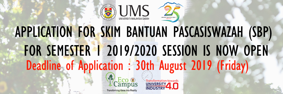 SUBJECT: APPLICATION FOR SKIM BANTUAN PASCASISWAZAH (SBP) FOR SEMESTER 1 2019/2020 SESSION IS NOW OPEN