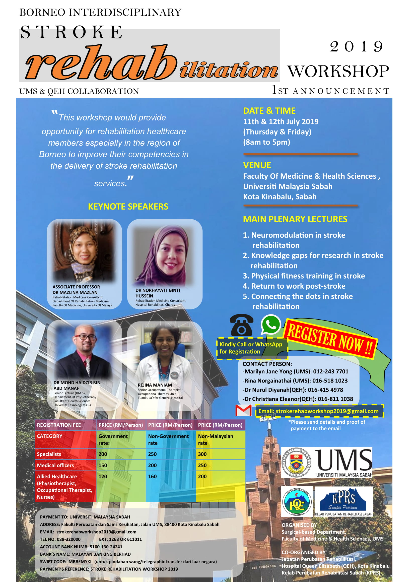 SUBJECT : BORNEO INTERDISCIPLINARY STROKE REHABILITATION WORKSHOP 2019