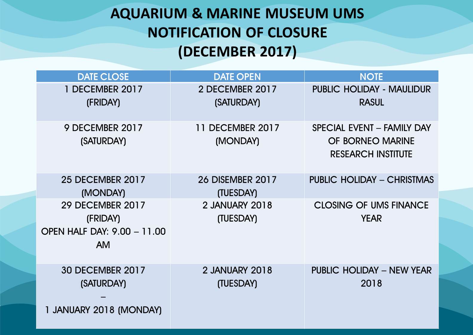 Date | : 17 December 2017 (Sunday) |