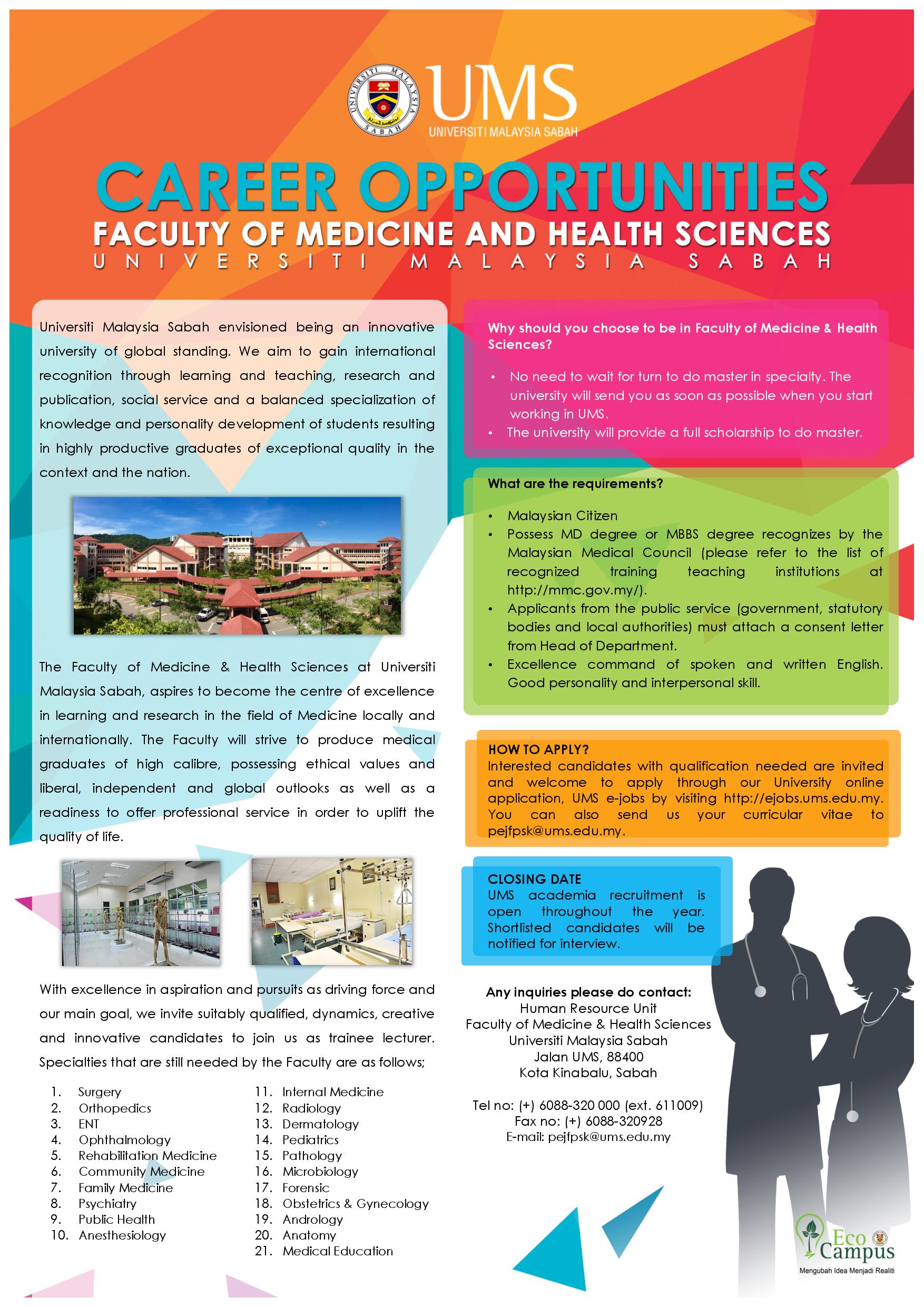 SUBJECT | : VACANCY FOR ACADEMIC STAFF, SPECIALISTS AND TRAINEE LECTURER IN FACULTY OF MEDICINE & HEALTH SCIENCES |