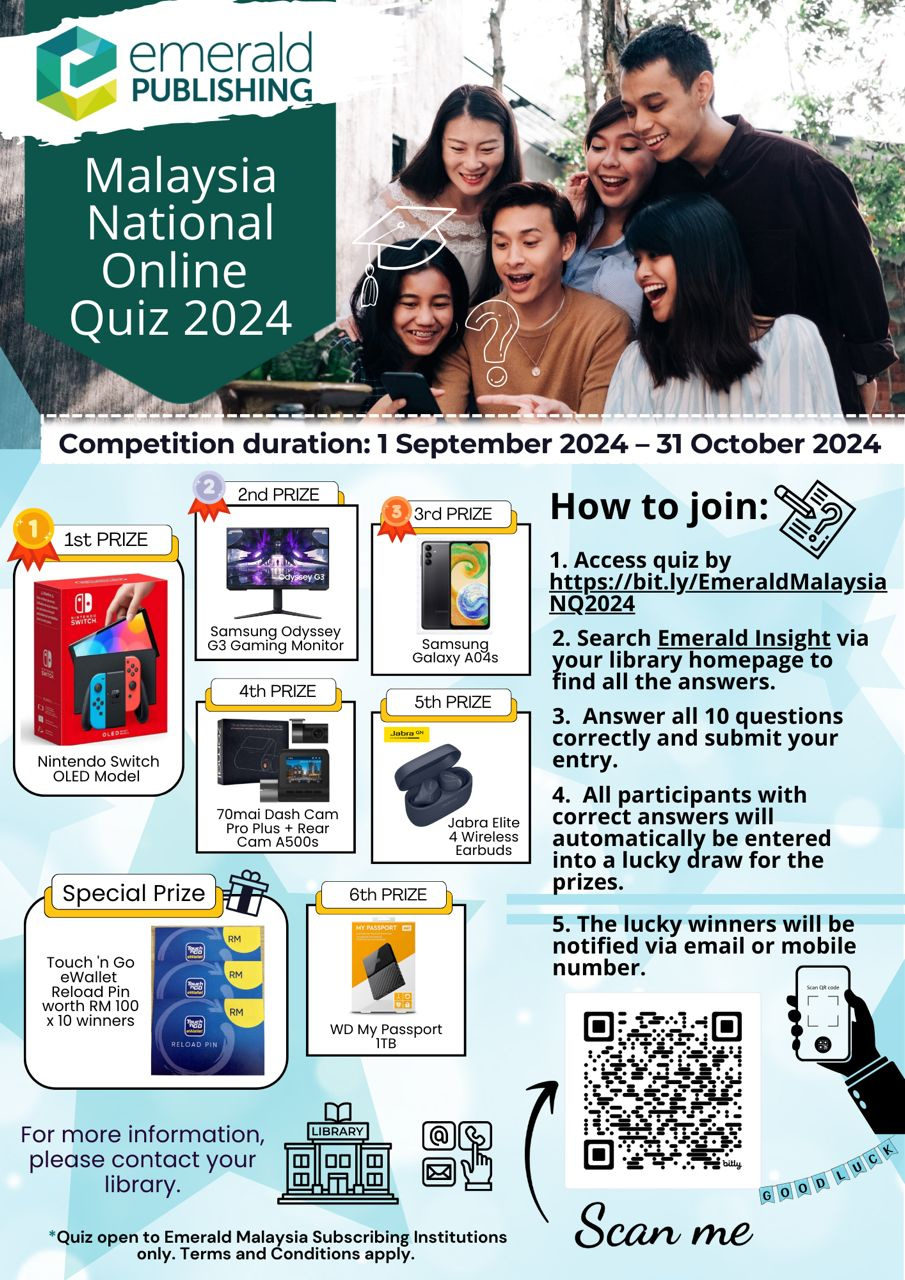 🎉 The MALAYSIA NATIONAL ONLINE QUIZ 2024 is here again! You have until 31 October 2024 to join in the fun and stand a chance to win amazing prizes! 🎁