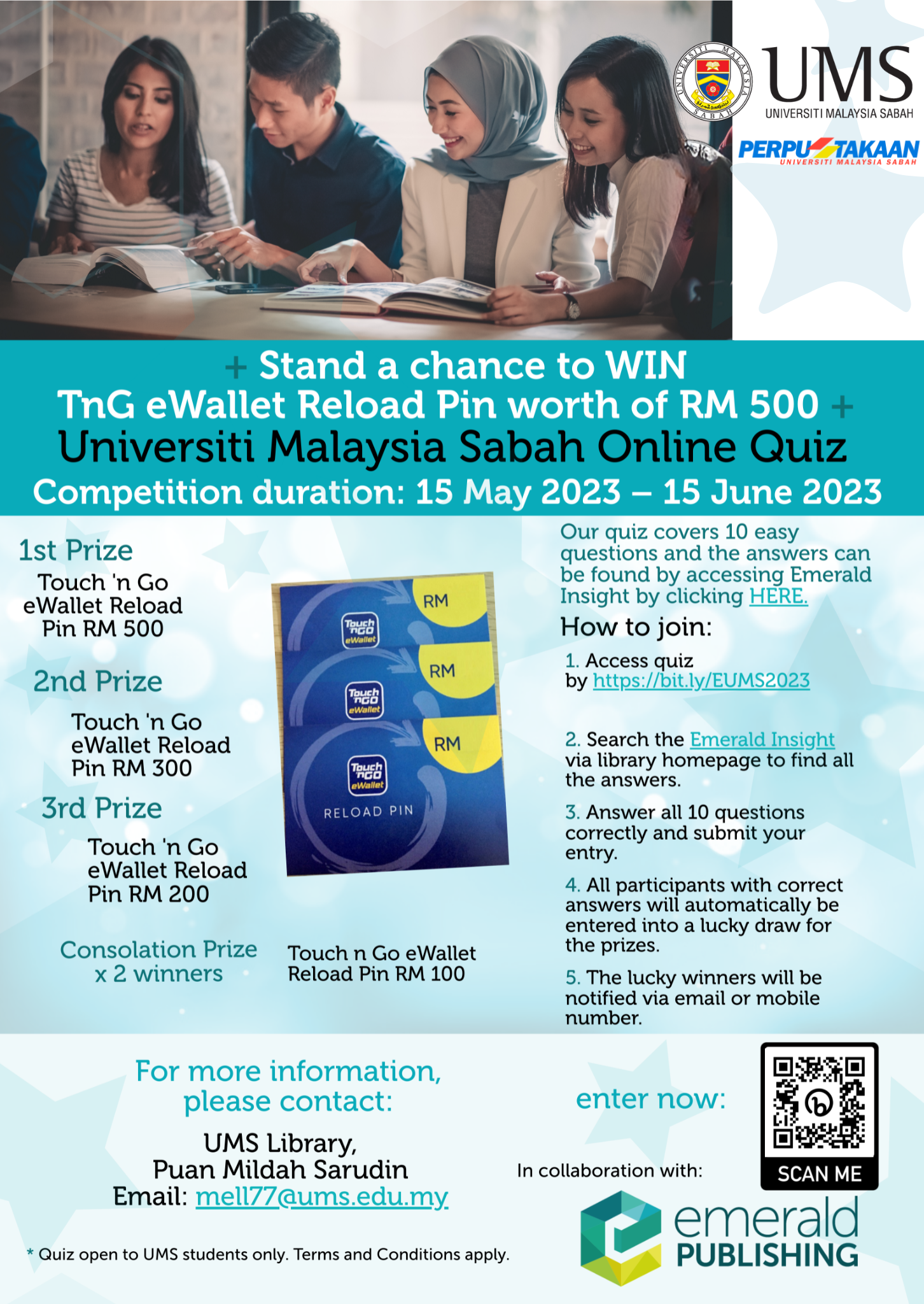 Any inquiries can be directed to the ICoHSE6 2023 Secretariat at This email address is being protected from spambots. You need JavaScript enabled to view it.. You can register through the website https://icohse.unimap.edu.my/