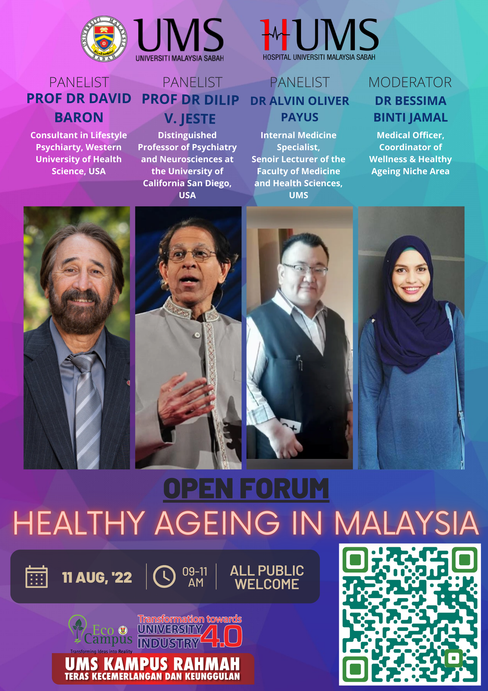 Malaysia will be an aged society in 2044 (with 14 per cent of its population aged 65 and over, and the number of people over 65 years in Malaysia is projected to triple from two million today to over six million by 2040. What are the challenges we face to age healthily and maintain wellbeing in old age? How do we achieve healthy ageing, starting from now?