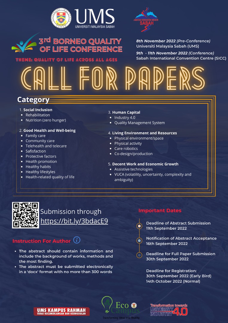 #CallForPapers #3rdbqolc #UMS #JKNS #QualityOfLife #AllAges