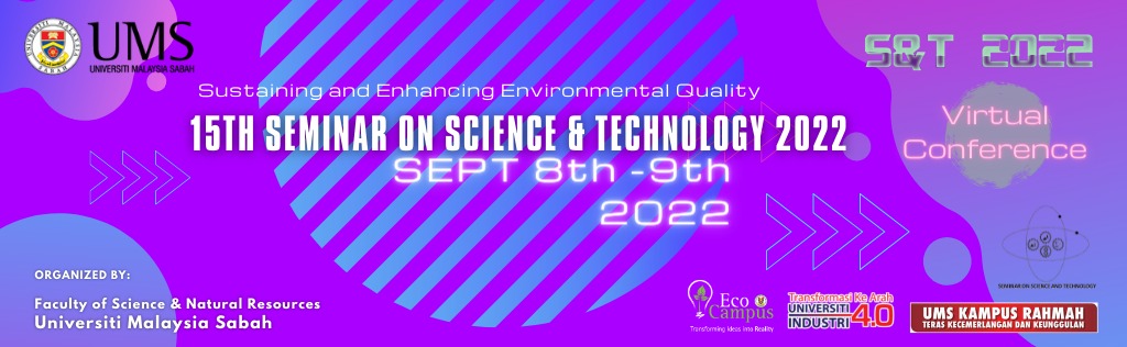 The Faculty of Science and Natural Resources (FSSA) Universiti Malaysia Sabah (UMS) is organizing the 15th Seminar on Science and Technology 2022 (S&T2022), which will be conducted as a fully Virtual Conference from 8th to 9th September 2022.