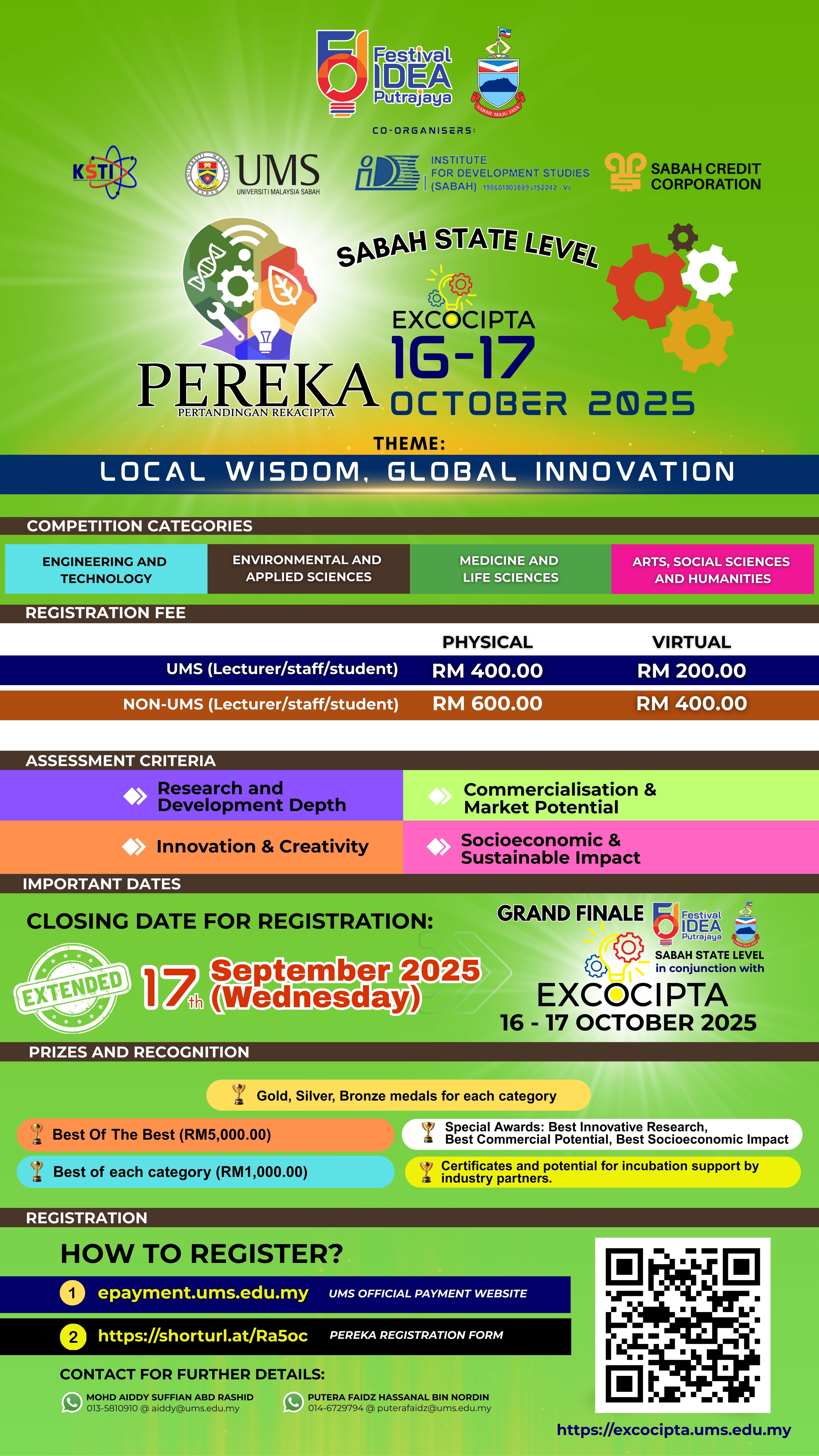 The registration deadline for PERTANDINGAN REKA CIPTA (PEREKA 2025) is EXTENDED until 17 SEPTEMBER 2025 (Wednesday)! 🎉