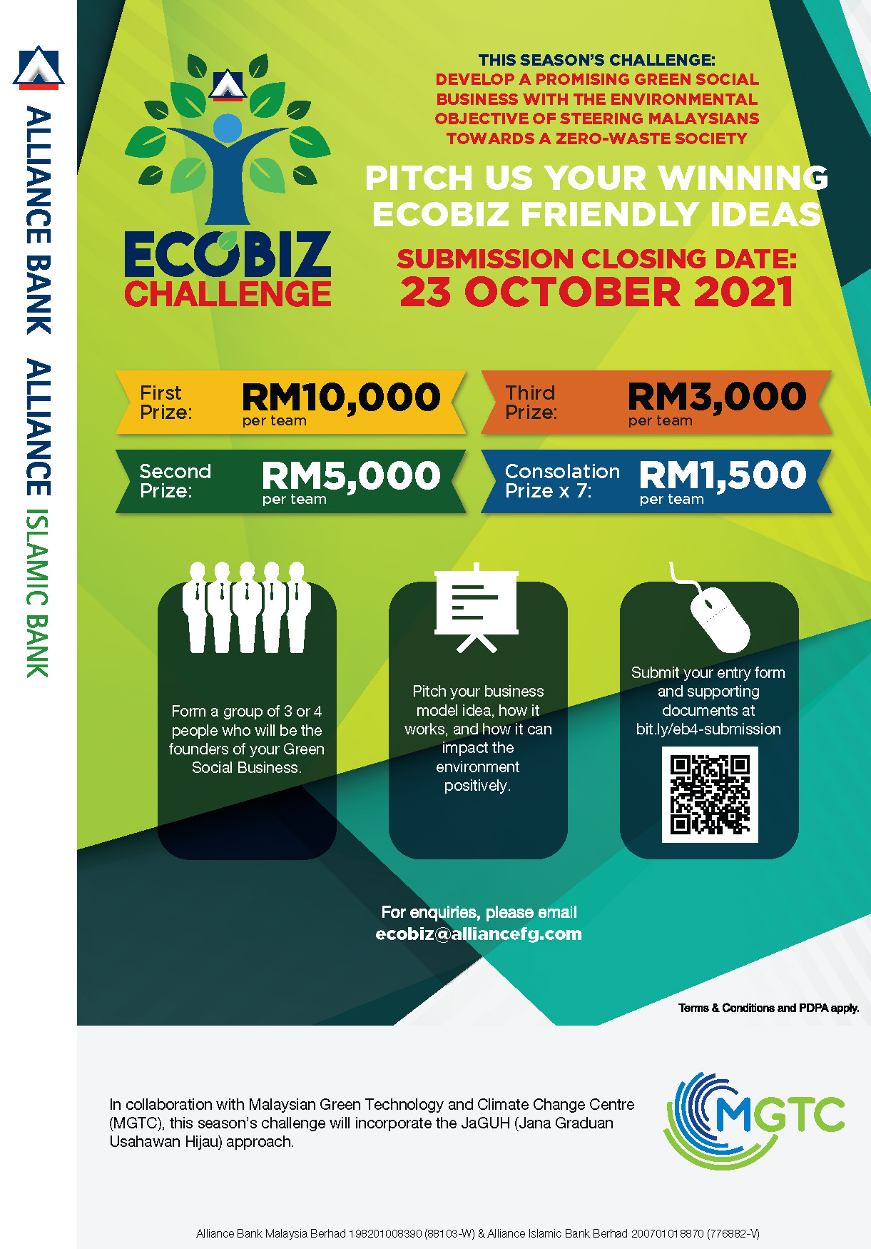 EcoBiz 4 is incorporating the Jana Graduan Usahawan Hijau (JaGUH) approach. Hence the theme for EcoBiz 4 to 𝘥𝘦𝘷𝘦𝘭𝘰𝘱 𝘢 𝘱𝘳𝘰𝘮𝘪𝘴𝘪𝘯𝘨 𝘎𝘳𝘦𝘦𝘯 𝘚𝘰𝘤𝘪𝘢𝘭 𝘉𝘶𝘴𝘪𝘯𝘦𝘴𝘴 𝘸𝘪𝘵𝘩 𝘵𝘩𝘦 𝘦𝘯𝘷𝘪𝘳𝘰𝘯𝘮𝘦𝘯𝘵𝘢𝘭 𝘰𝘣𝘫𝘦𝘤𝘵𝘪𝘷𝘦 𝘰𝘧 𝘴𝘵𝘦𝘦𝘳𝘪𝘯𝘨 𝘔𝘢𝘭𝘢𝘺𝘴𝘪𝘢𝘯𝘴 𝘵𝘰𝘸𝘢𝘳𝘥𝘴 𝘢 𝘡𝘦𝘳𝘰 𝘞𝘢𝘴𝘵𝘦 𝘴𝘰𝘤𝘪𝘦𝘵𝘺.