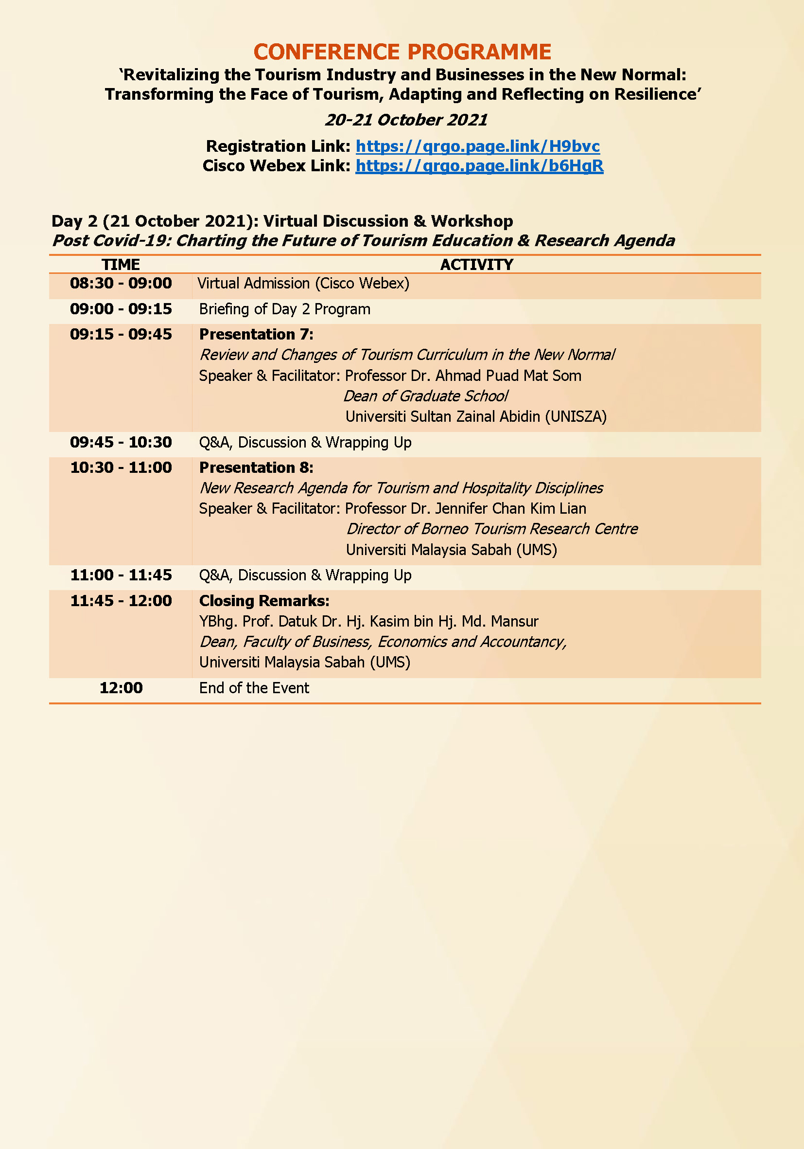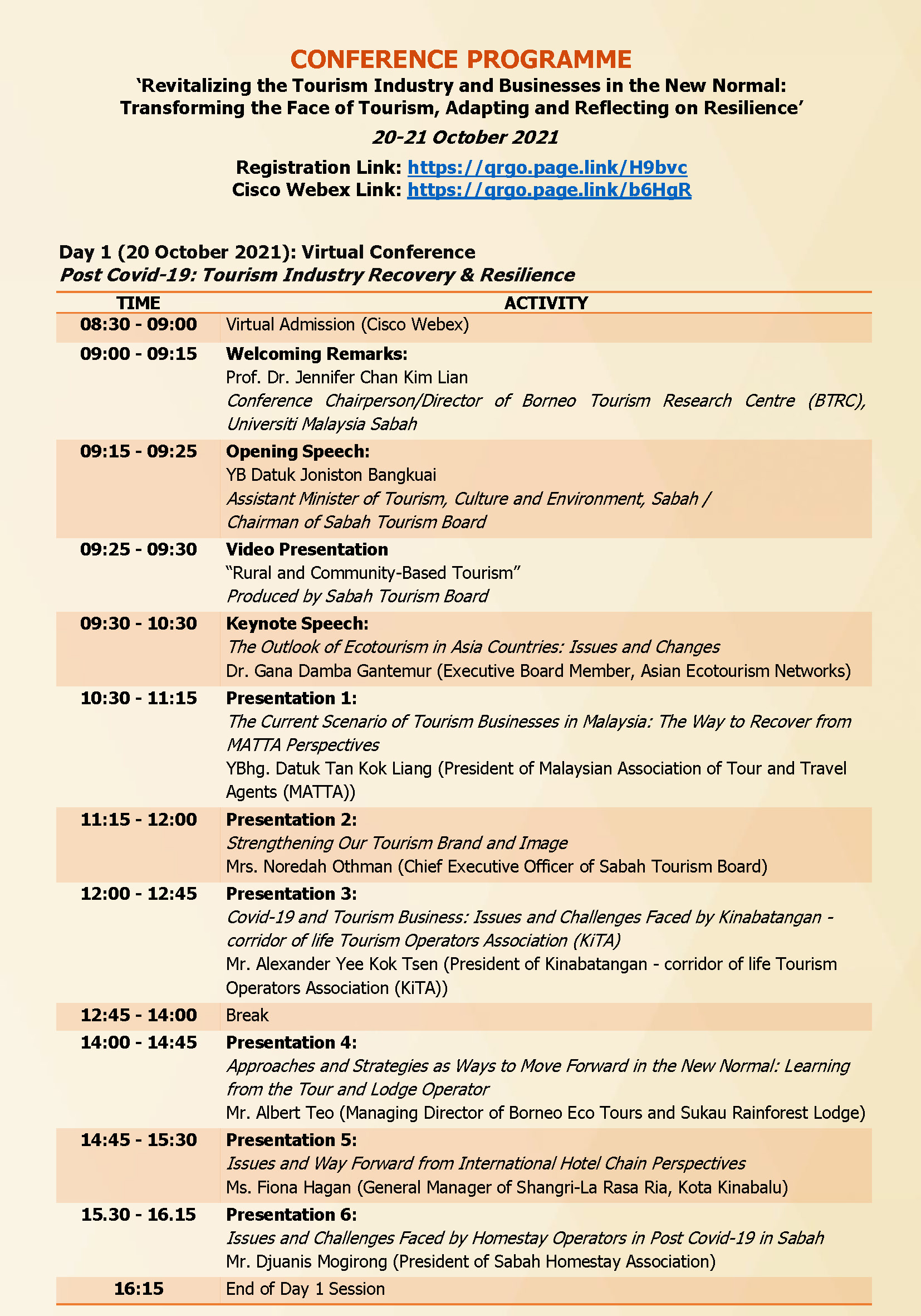 Regional Tourism Conference & Workshop (Virtual Conference): 20-21 October 2021 (.pdf)