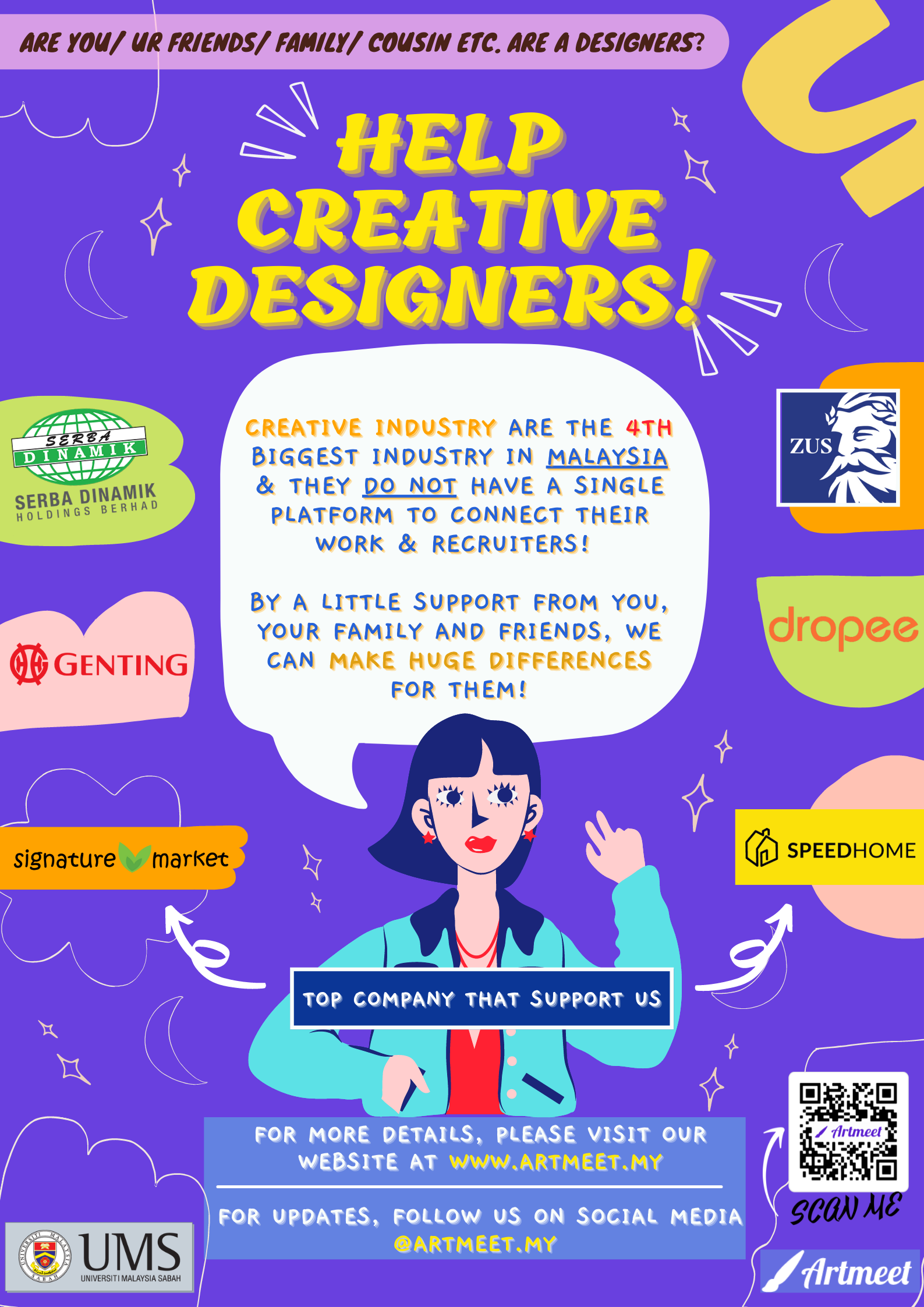 Ng Jia Qi, one of the FKI undergraduate students who currently undergo her industrial training. She and her friend successfully entered the semi-final of MaGIC University Startup Challenge 2021. They plan to raise RM10K in the crowdfunding campaign in order to win the competition. They need the SUPPORT and HELP from you! Scan the QR code or click the link: https://www.artmeet.my/ to know more!