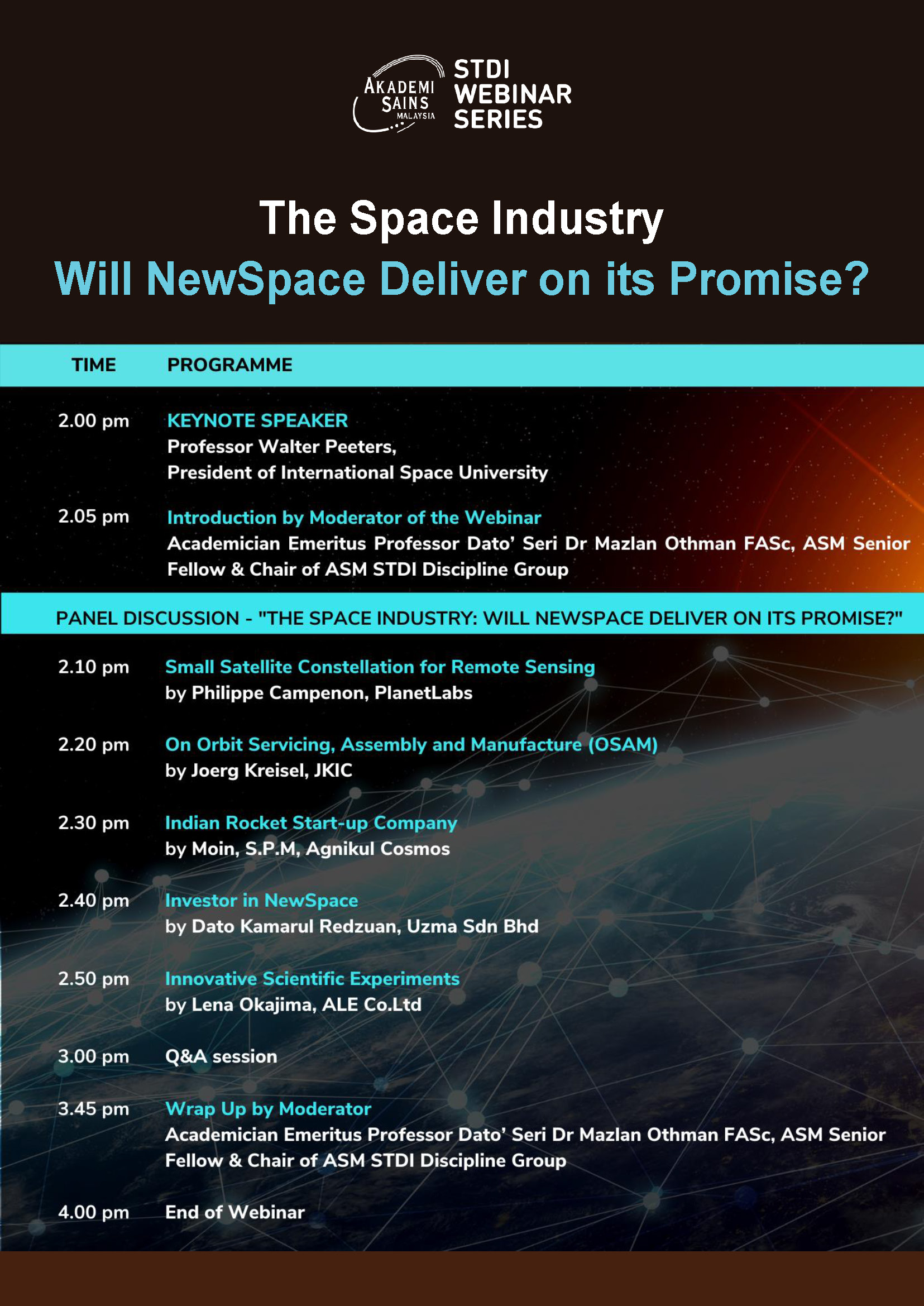 Invitation To ASM STDI Webinar Series On “The Space Industry: Will NewSpace Deliver On Its Promise?
