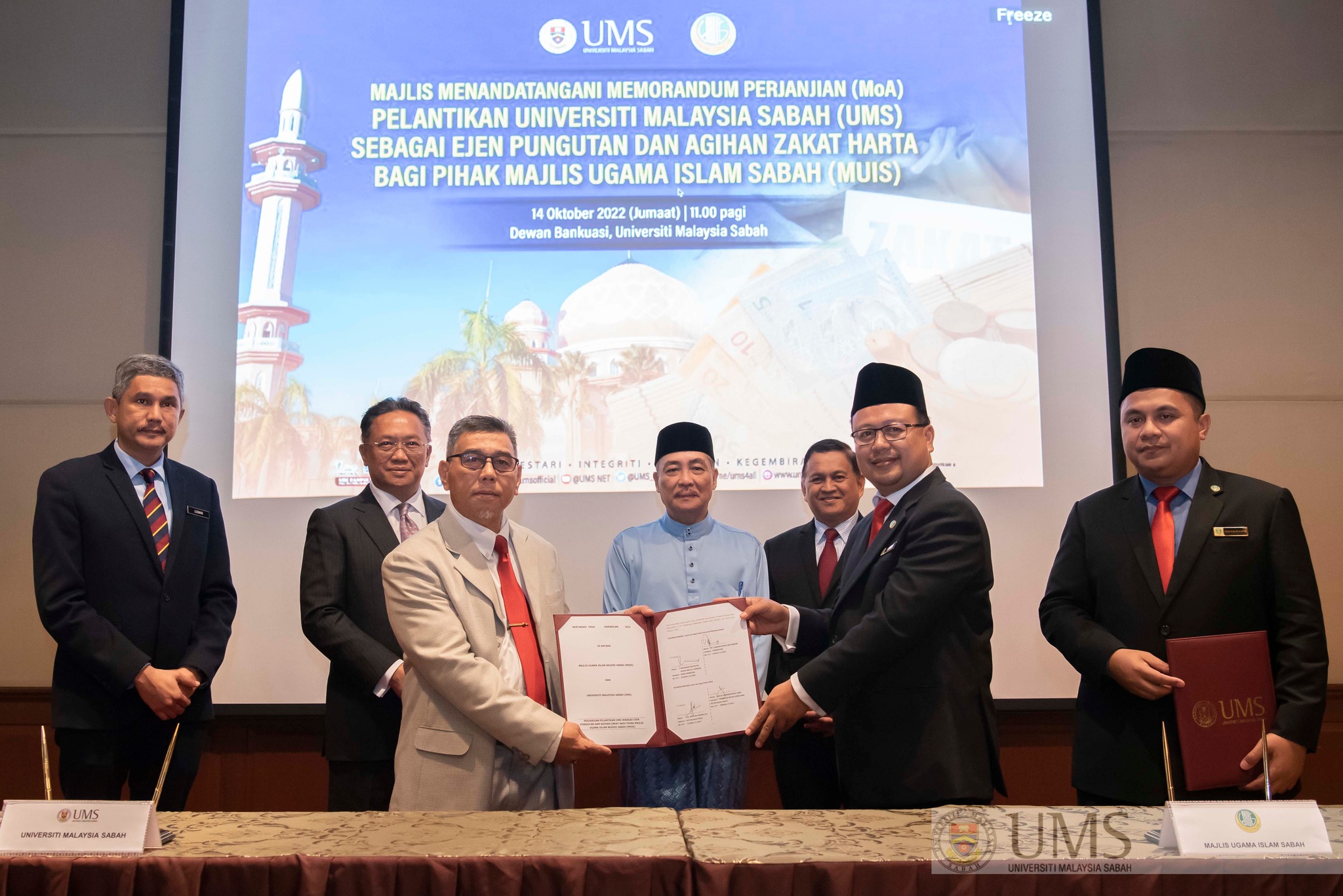 KOTA KINABALU: Universiti Malaysia Sabah (UMS) yesterday signed a Memorandum of Agreement (MOA) with the Sabah Islamic Religious Council (MUIS) on tithe collection and distribution.