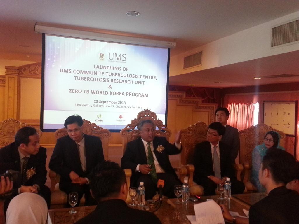 MONDAY, 23 SEPTEMBER – A ceremony to mark the launching of Universiti Malaysia Sabah (UMS) Community Tuberculosis Centre (CTC), Tuberculosis Research Unit and Zero TB World Korea Programme was held at the Galeri, Chancellery Building, UMS today. It was organised in collaboration with UMS TB Research Unit, Zero TB Korea and the Sabah State Health Department. Prof. Dr. Shahril Yusof, Deputy Vice-Chancellor of Research and Innovation who represented the Vice-Chancellor, Prof. Datuk Dr. Mohd Harun Abdullah when officiating at the function said that steps should be taken to help bring down TB cases in Sabah.