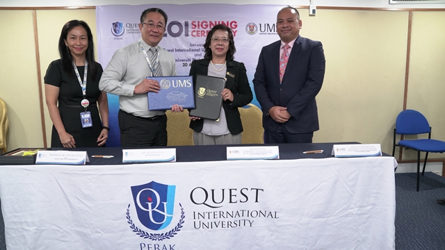 FRIDAY, 23 AUGUST - Borneo Tourism Research Centre, under the Faculty of Business, Economics and Accountancy, Universiti Malaysia Sabah (UMS) and Faculty of Business and Management, Quest International University Perak (QIUP), signed a letter of intent recently to strengthen cooperation, coordination and mobility in the field Tourism and Sustainability during the Sustainability Seminar 2019 at QIUP, Ipoh, Perak.