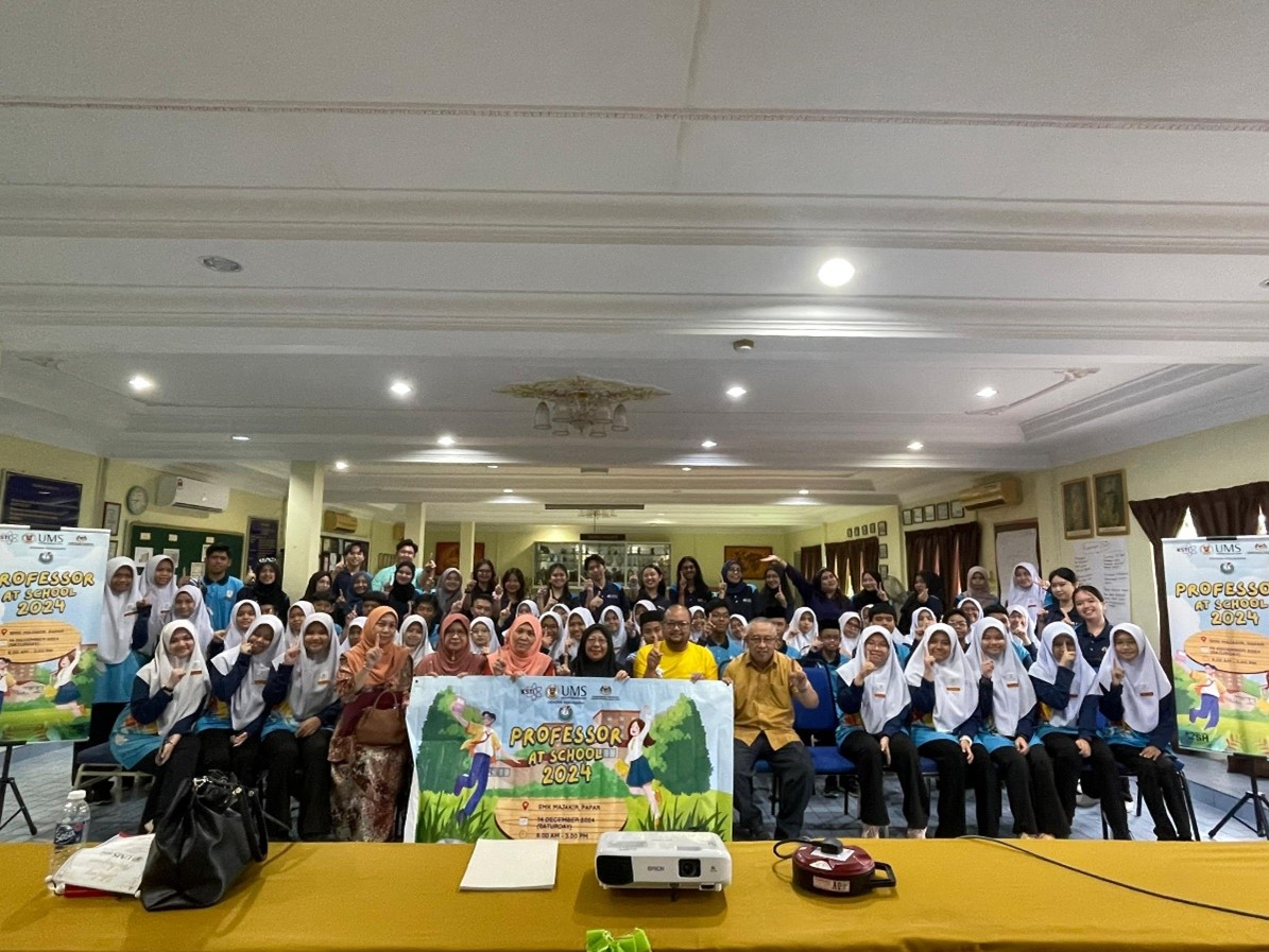 The One Health Student Club (OHSC) of Universiti Malaysia Sabah (UMS), in collaboration with the U-Science Center UMS and the Sabah Ministry of Science and Technology, recently launched the ‘Professor@School’ program at Sekolah Menengah Kebangsaan (SMK) Majakir, Papar.