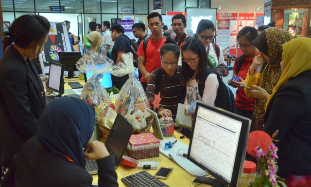 TUESDAY, 10 MAY – The annual Meet the Customers Week Programme (MBP) jointly organised by the Bursar Department (BEN), Development and Maintenance Department (JPP), Department of Information Technology and Communication (JTMK) and Universiti Malaysia Sabah (UMS) Library is currently held at the lobby of the Library.