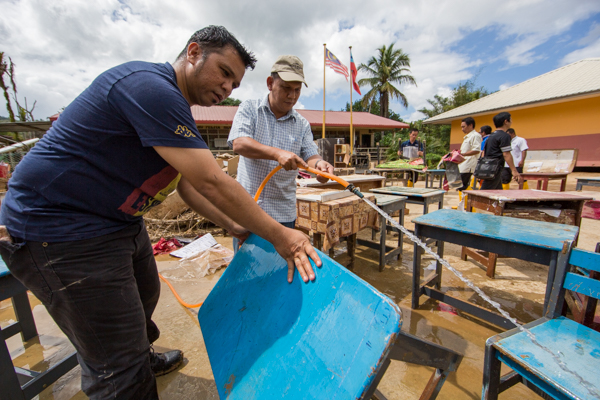 “We felt the need to offer our help seeing that this school is adversely affected. Usually we send food aid to the victims but this time we also carried out Corporate Social Responsibility (CSR) with the teachers of S.K. Sinoko and the Civil Defence Department (JPAM) Sabah to clean the school compound,” he said.