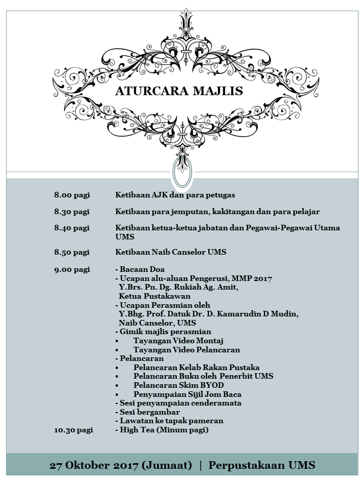17 October 2017 Hits: 3149 Ceremony Program Print Email ATURCARA MAJLIS PERASMIAN PENUTUPAN PROGRAM MINGGU MESRA PELANGGAN (MMP) 2017