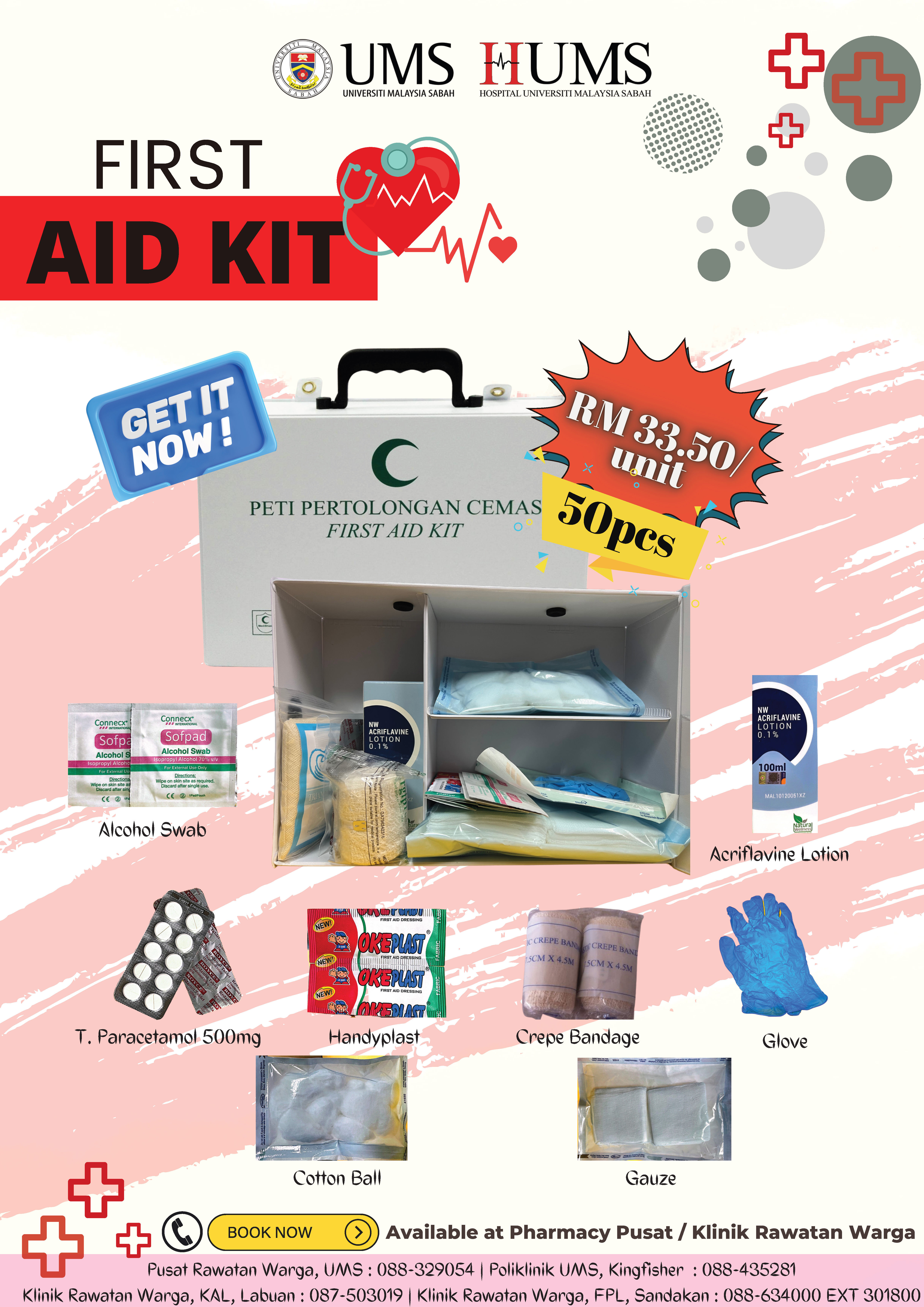 09 November 2022 Jumlah paparan: 1499 Promosi First Aid Kit daripada PKU, Hospital Universiti Malaysia Sabah Cetak Emel Pengumuman Daripada: Hospital UMS