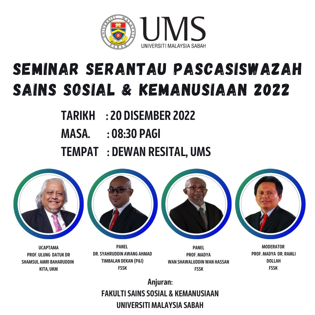 Sukacita dimaklumkan bahawa Seminar Serantau Pascasiswazah Sains Sosial dan Kemanusiaan 2022 akan diadakan pada 20-21 Disember 2022.