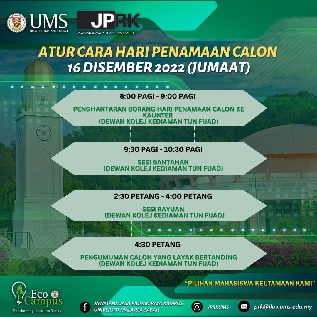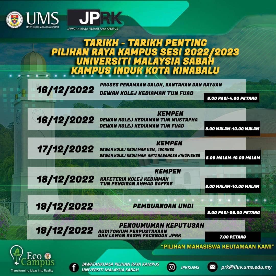 Ikuti perkembangan kami di laman rasmi Jawatankuasa Pilihan Raya Kampus Universiti Malaysia Sabah.
