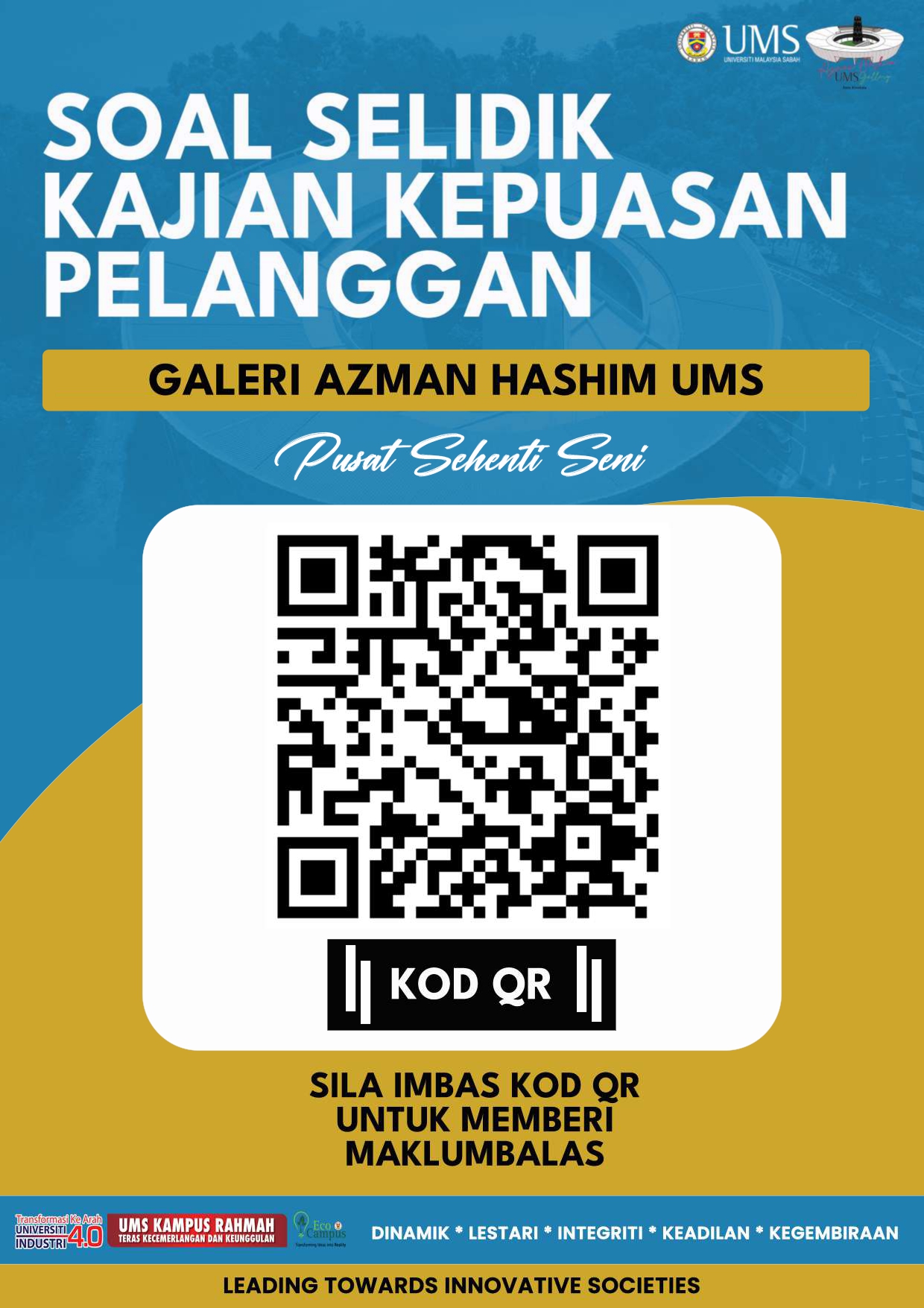 Dilampirkan poster dan link kajian soal selidik kepuasan pelanggan Galeri Azman Hashim UMS 2023 sebagai rujukan dan tindakan selanjutnya.