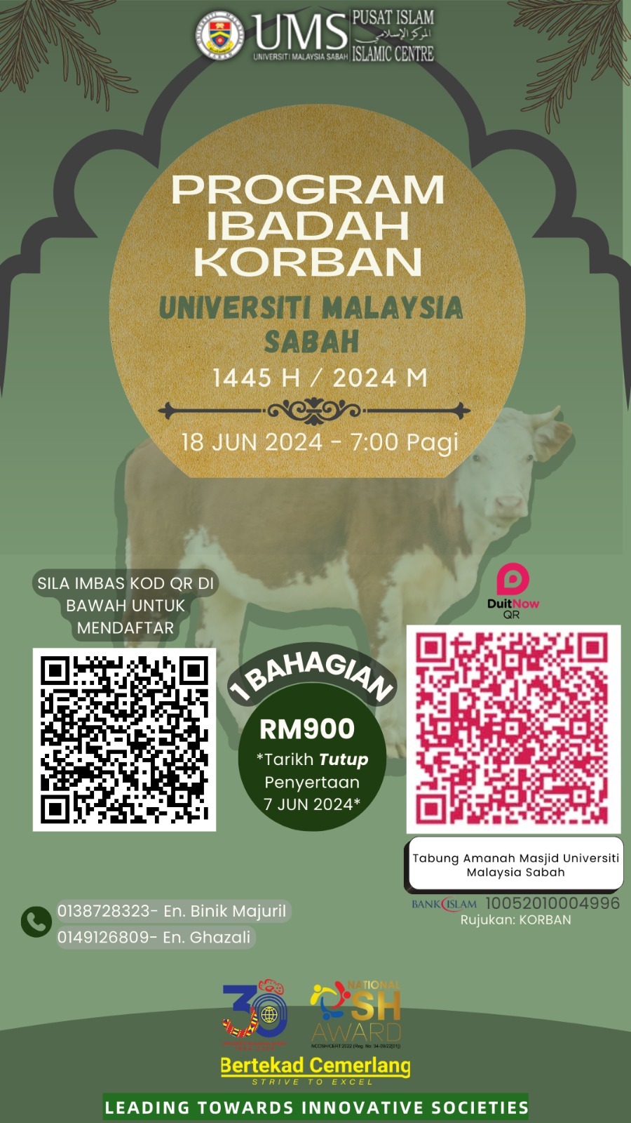 Sempena ketibaan Aidiladha ini, Pusat Islam mempelawa kepada seluruh warga UMS dan umat Islam untuk menyertai ibadah korban bersama Masjid UMS