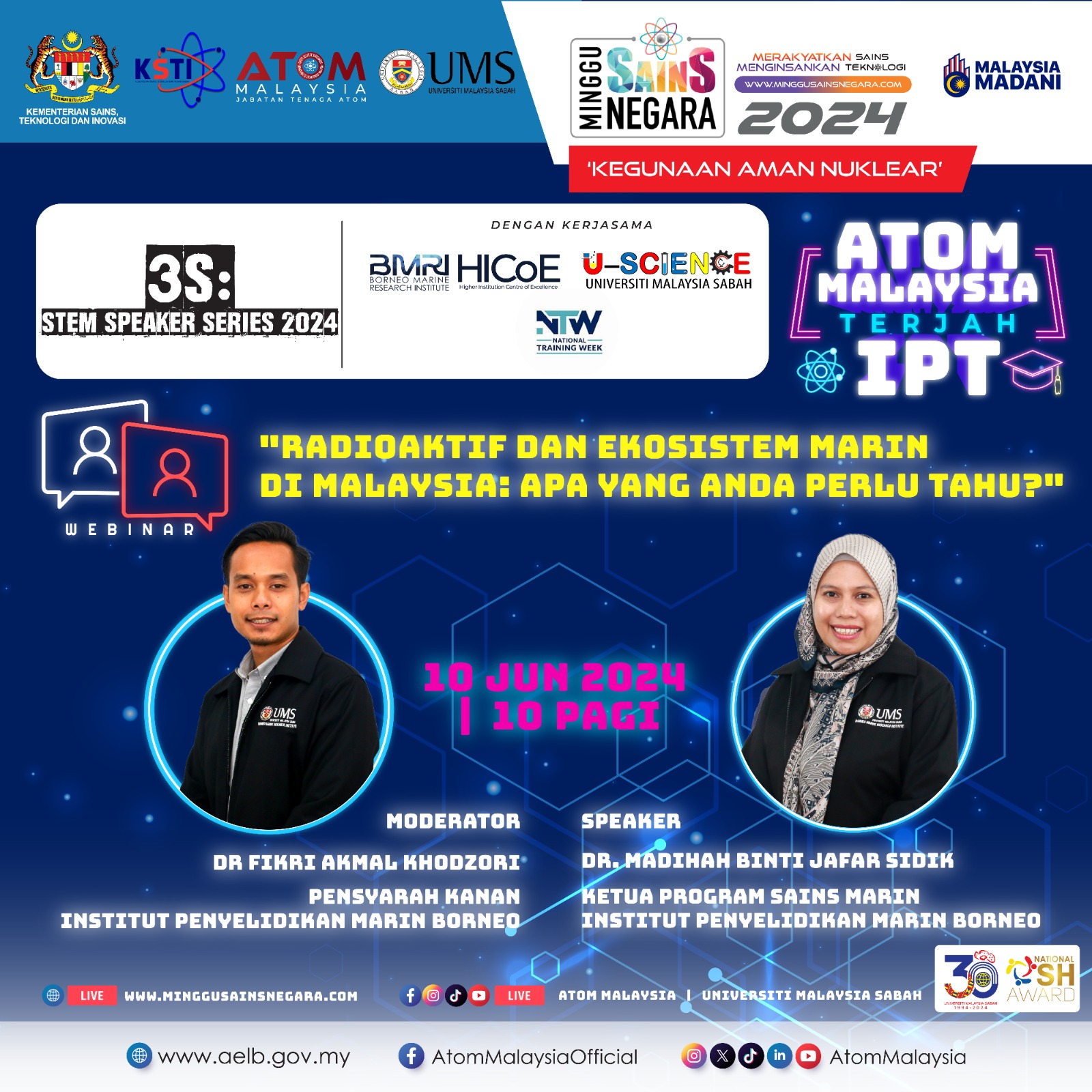 Jangan lepaskan peluang untuk saksikan di laman sesawang rasmi MSN2024: www.minggusainsnegara.com dan media sosial Atom Malaysia & UMS secara 'Live Stream' di platform berikut: