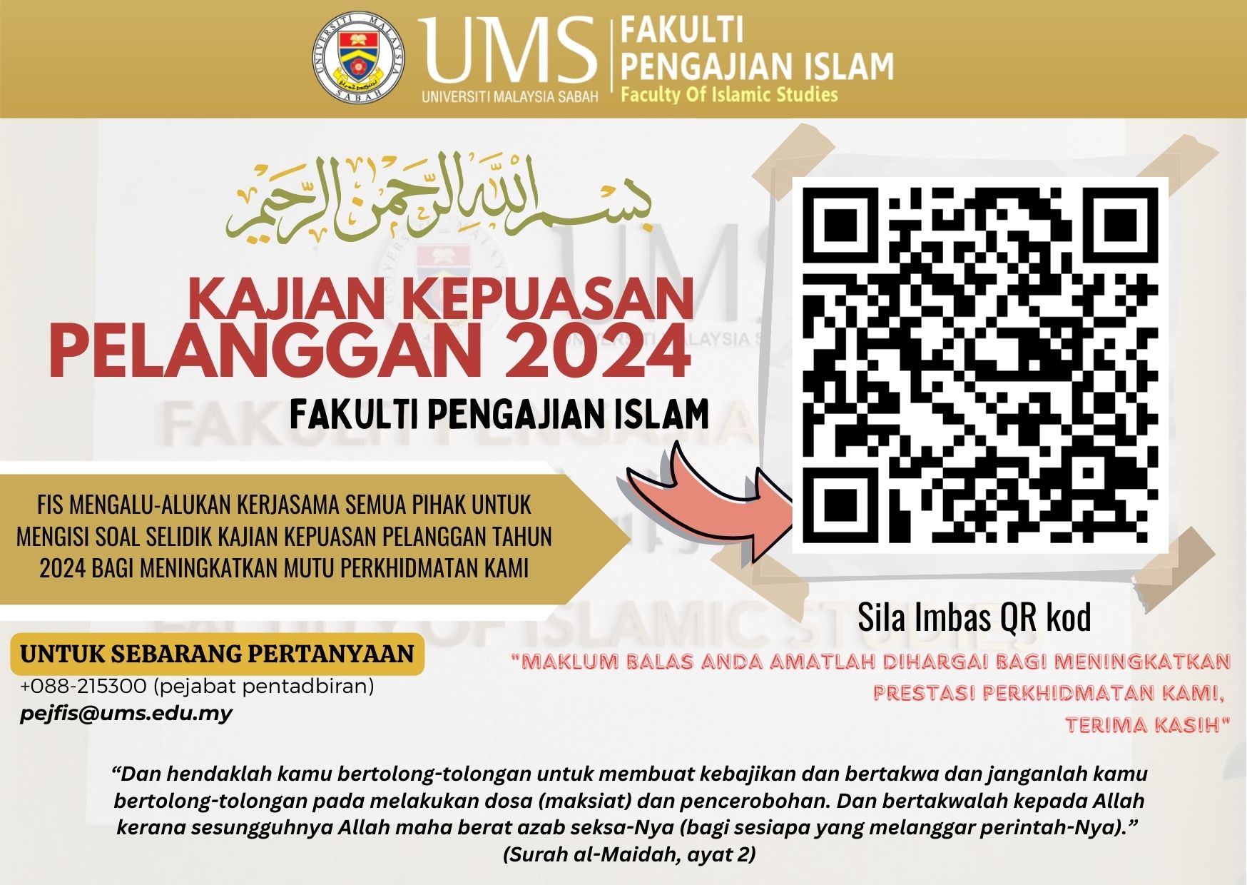 Dimaklumkan bahawa Fakulti Pengajian Islam sedang melaksanakan Kajian Kepuasan Pelanggan bagi meningkatkan lagi mutu perkhidmatan dan prestasi kami dari semasa ke semasa.