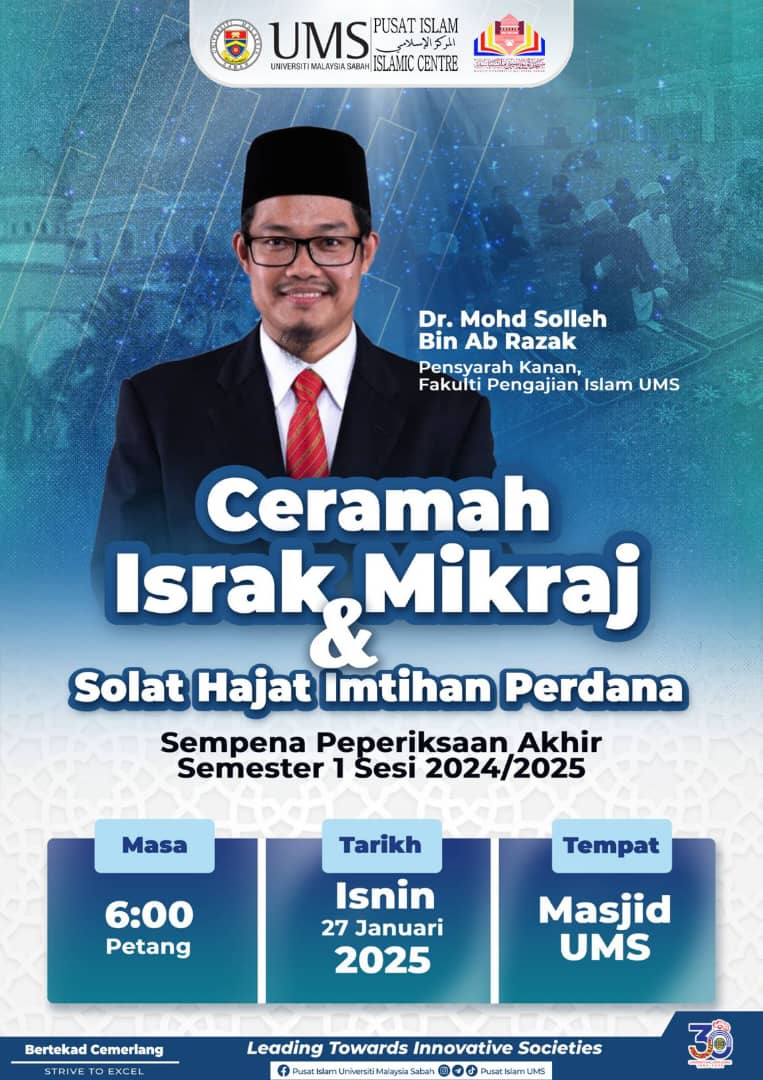 JEMPUTAN KE PROGRAM CERAMAH ISRAK MIKRAJ DAN SOLAT HAJAT IMTIHAN PERDANA DI MASJID UMS