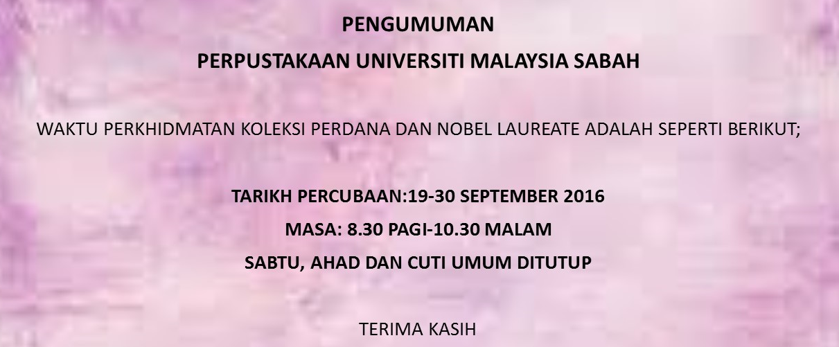 | PENGUMUMAN DARIPADA | : PERPUSTAKAAN UMS |