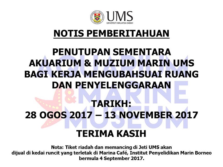 SUBJEK: PENUTUPAN SEMENTARA AKUARIUM & MUZIUM MARIN UMS BAGI KERJA MENGUBAHSUAI RUANG DAN PENYELENGGARAAN
