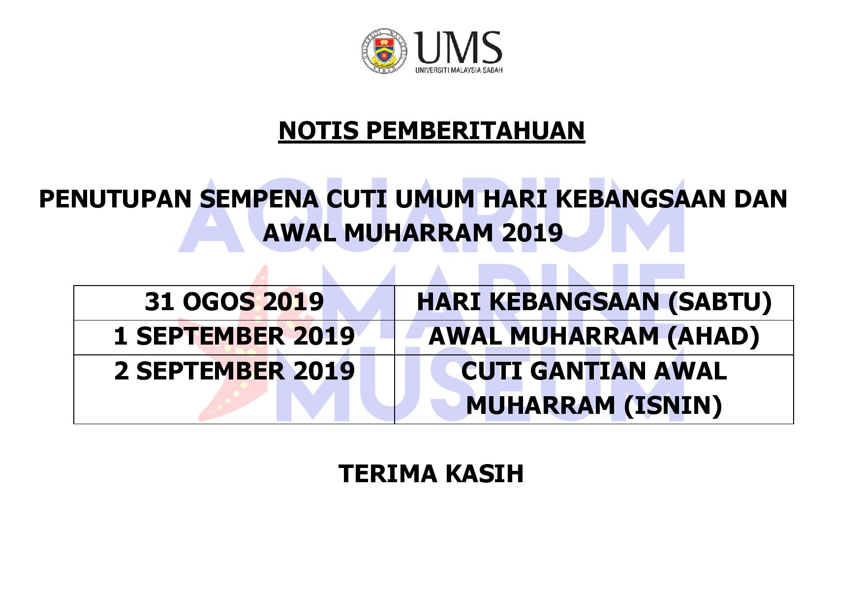 PENUTUPAN AKUARIUM DAN MUZIUM MARIN SEMPENA CUTI UMUM